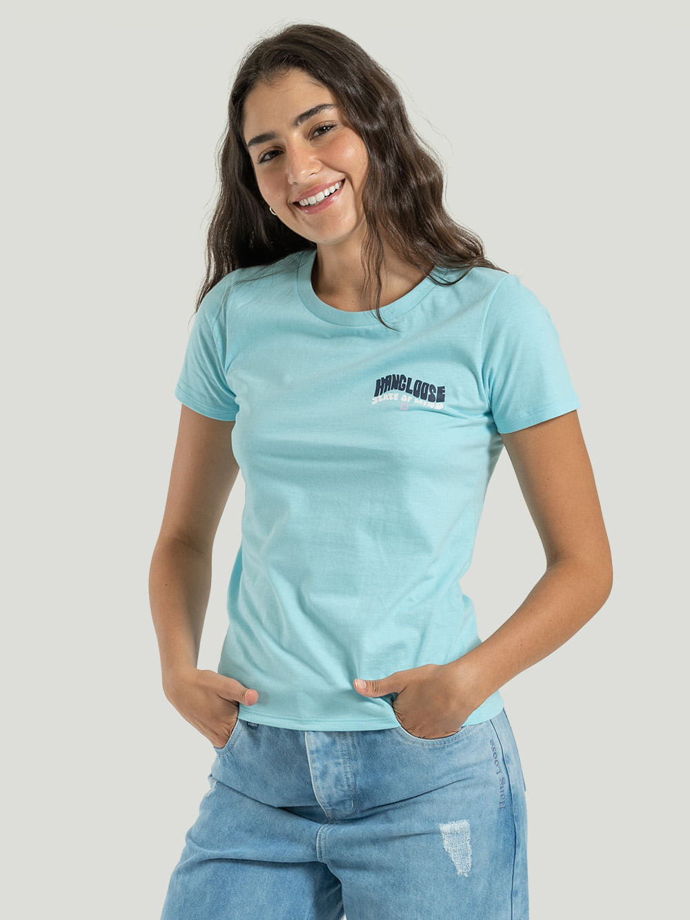 Nossa Baby Look Hang Loose Ray, confeccionada em algodão super confortável. Possui estampa frontal e nas costas. Disponível nas cores azul, asfalto e off white.