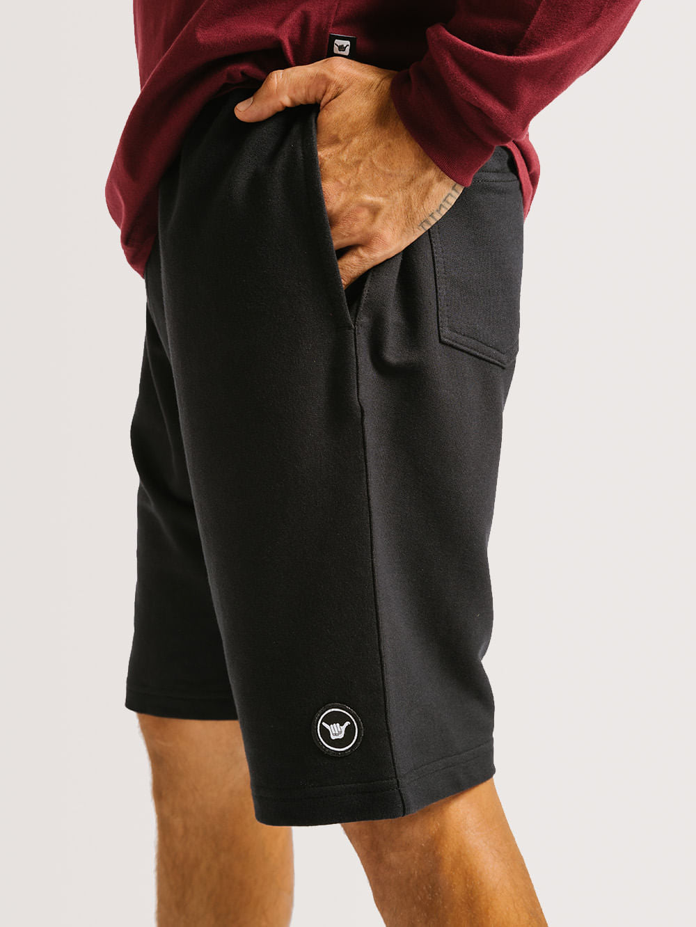 Bermuda Moletom Hang Loose Round, possui cintura com elástico e cordão de ajuste, bolsos frontais e traseiros e aplicações de etiqueta Hang Loose. Confeccionada em tecido moletinho sem felpa.