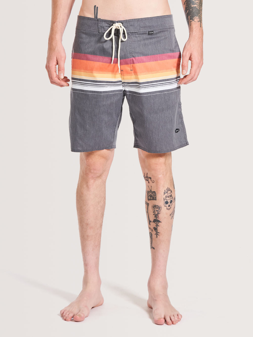 Bermuda híbrida preta Hang Loose Set, possui cós com ajuste de cordão, bolsos frontais, ilhós personalizado, bolso embutido com aplicação de etiqueta e etiquetas Hang Loose. Confeccionada em tecido 4 Way-Stretch com algodão.