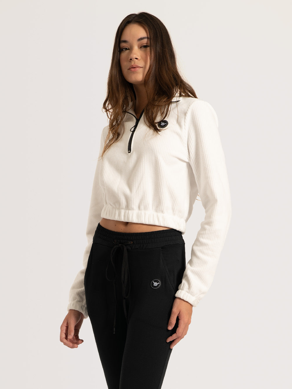 Blusão Canelado Hang Loose Soft. Possui modelagem cropped, elástico na barra, zíper frontal na gola e ícone Hang Loose no peito.