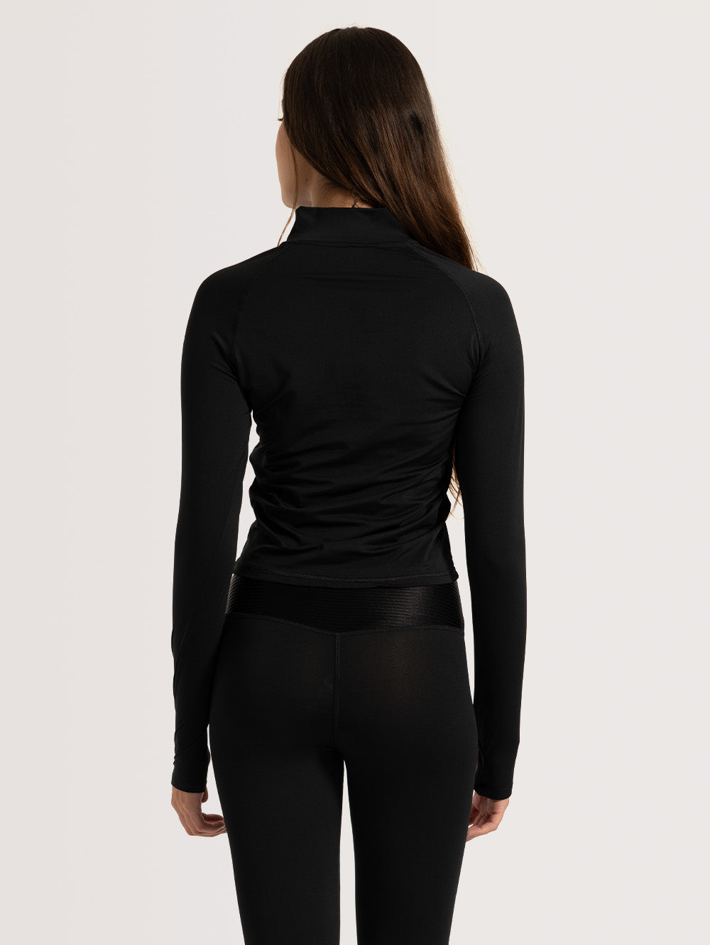 Blusa Hang Loose Energy Up. Possui modelagem ajustada, zíper frontal, recortes com tecido em telinha, manga longa com furo do dedo e ícone Hang Loose no peito.
