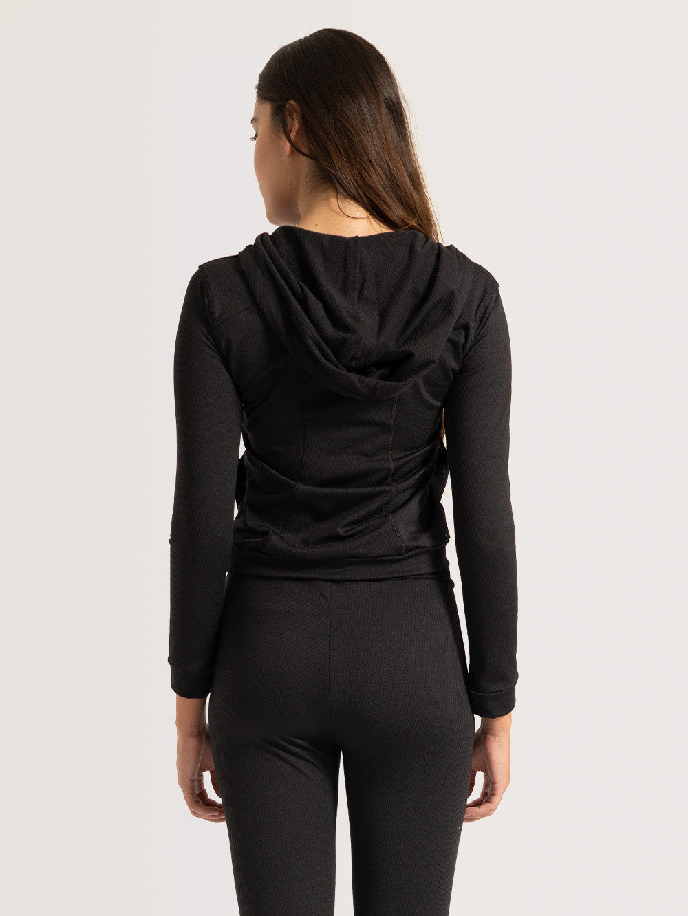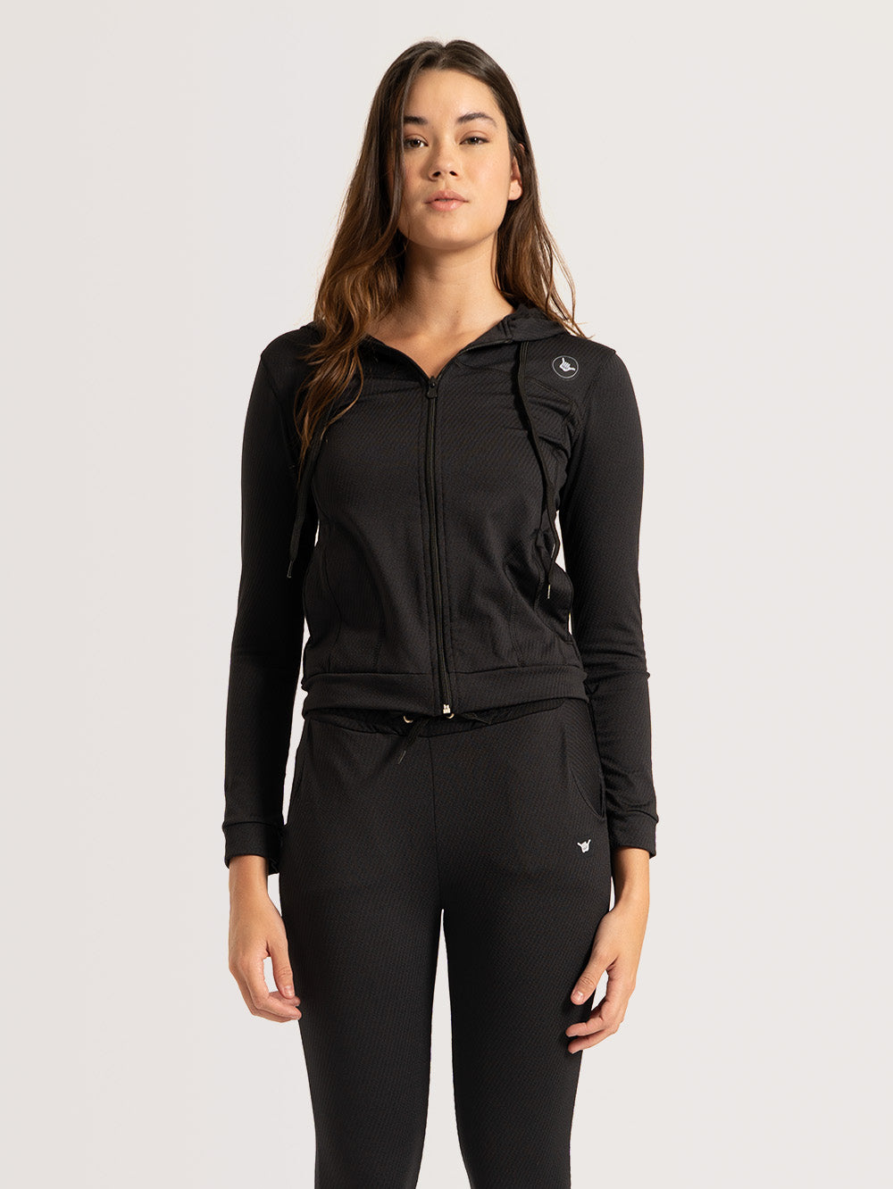 Blusa Hang Loose Rope. Possui modelagem cropped, zíper frontal, capuz com cordão regulador e ícone Hang Loose no peito.