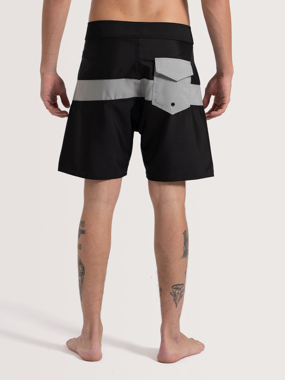 Boardshort Hang Loose Oldscool 18", possui ilhós personalizado, cós com ajuste de cordão frontal, etiqueta Hang Loose, recorte faixa bicolor e bolso traseiro com lapela contraste. Confeccionado em tecido 4 Way Stretch.