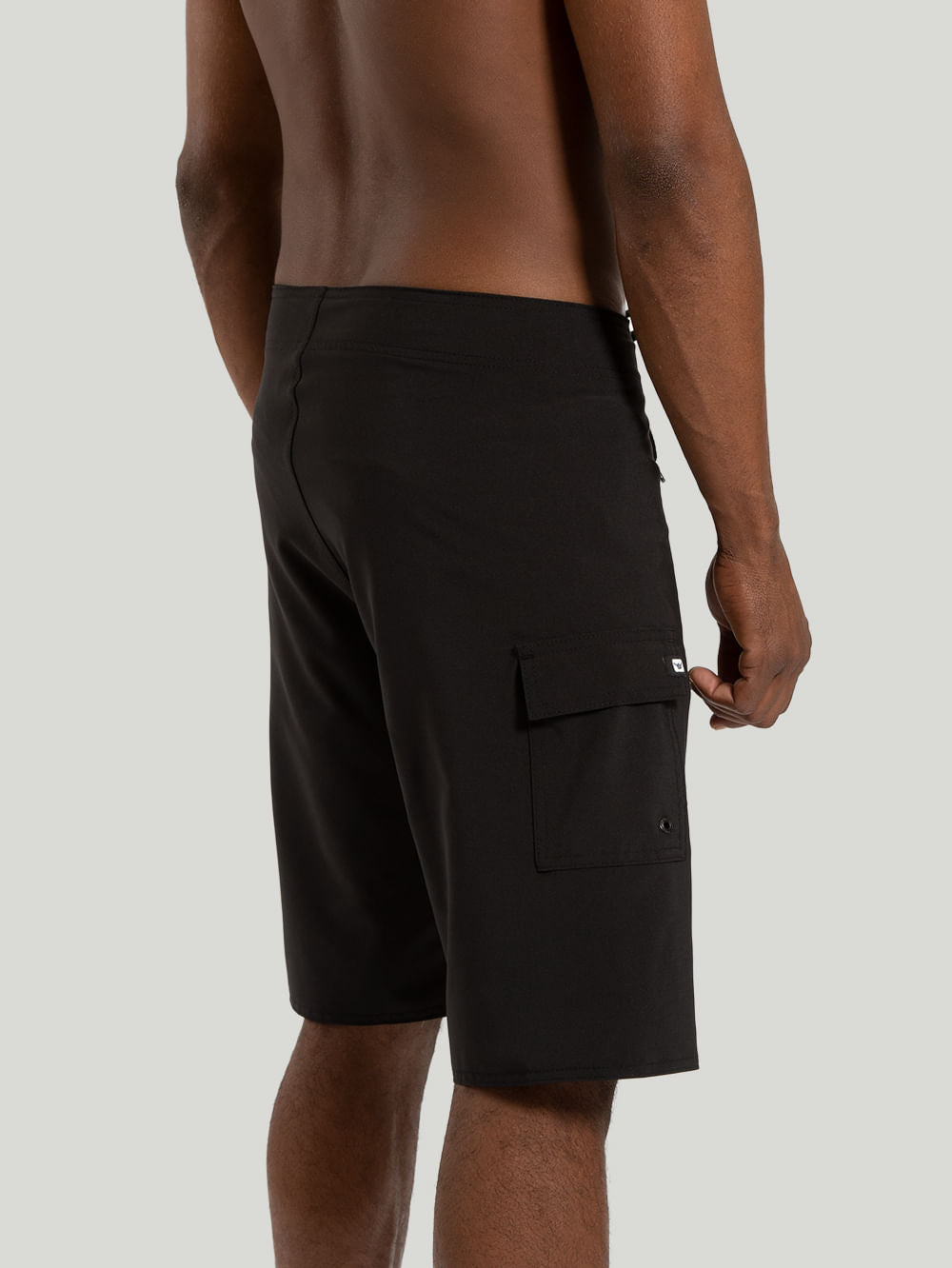 O Boardshort Hang Loose Glory Preto possui tecido 4 Way Stretch (estica para os 4 lados), 21 polegadas de comprimento, cós com ajuste de cordão, bolso lateral com lapela, ilhós personalizado, silk lateral e etiquetas Hang Loose.