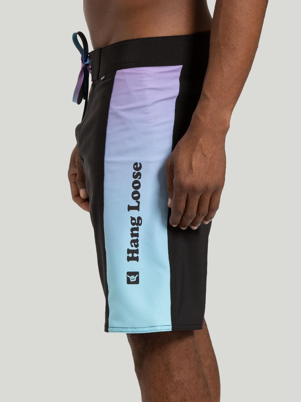 Nosso Boardshort Hang Loose Sunrise, confeccionado em tecido 4 way stretch. Possui 20 polegadas, faixas laterais estampadas, cós com ajuste de cordão, ilhós personalizado, bolso traseiro com lapela e etiquetas Hang Loose.