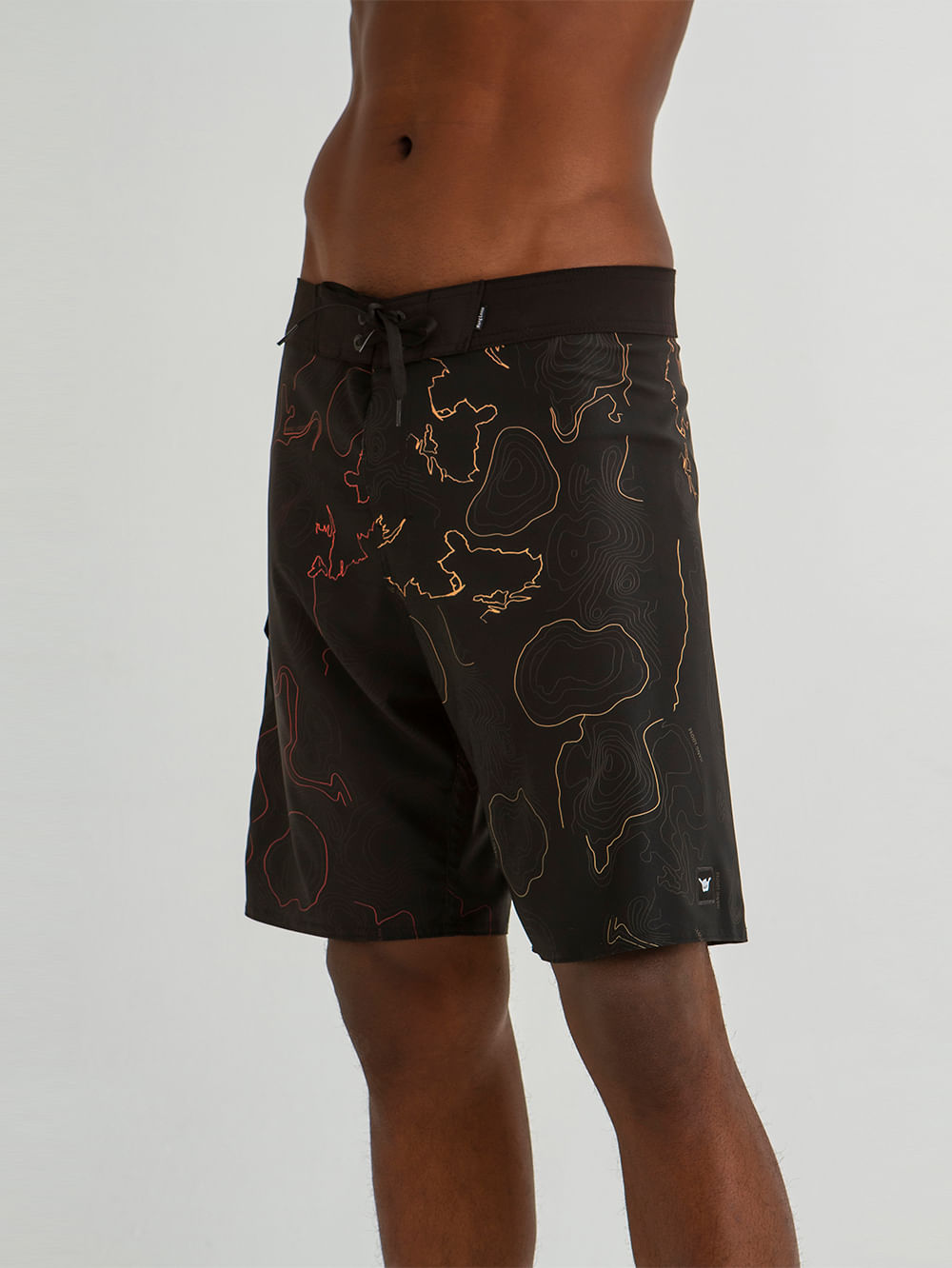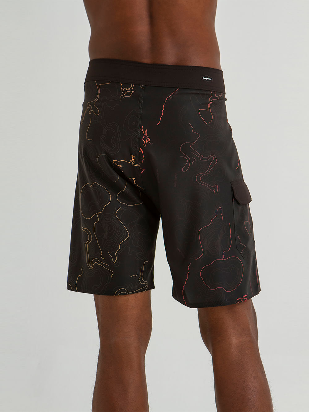 Boardshort Hang Loose Swell Preto confeccionado em poliéster e elastano.
