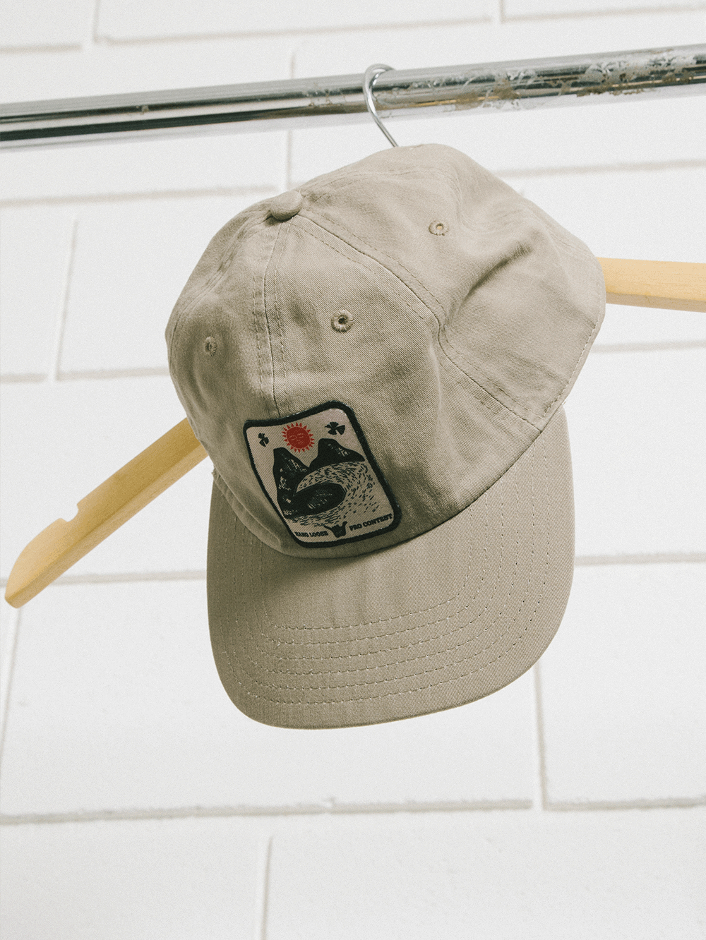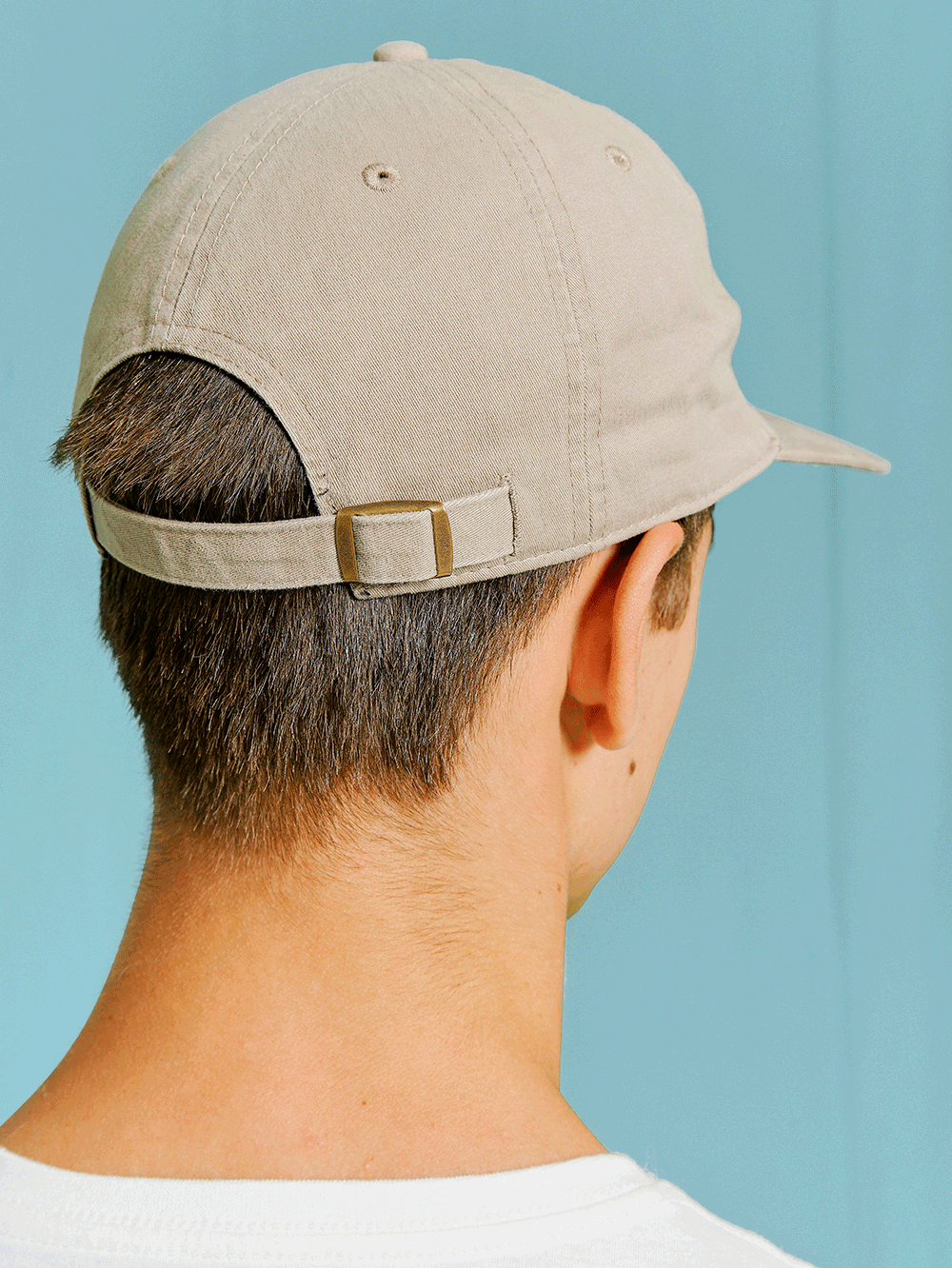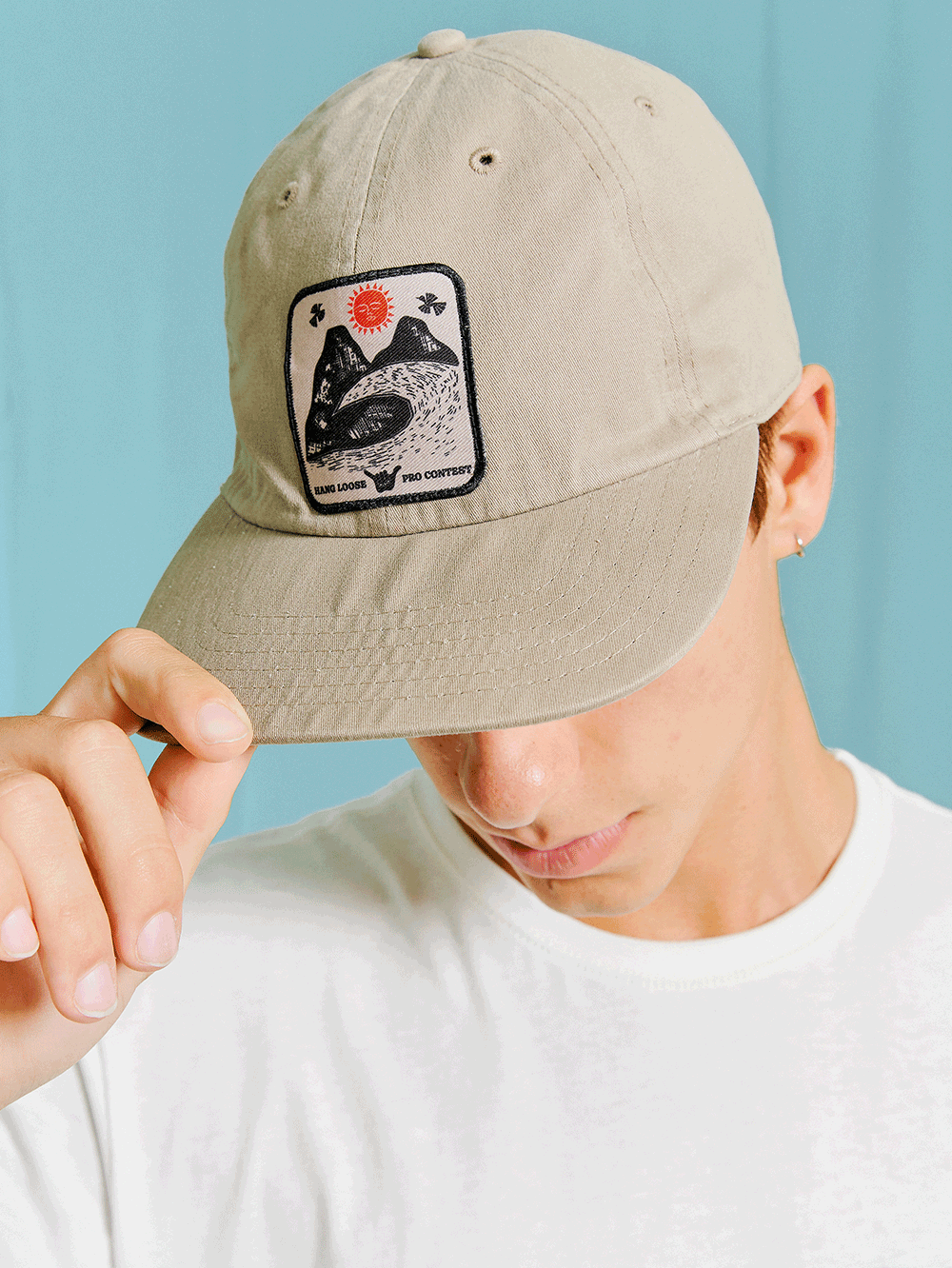 Boné aba curva "Dad Hat" com arte 2 Irmãos em patch frontal e fecho strapback.