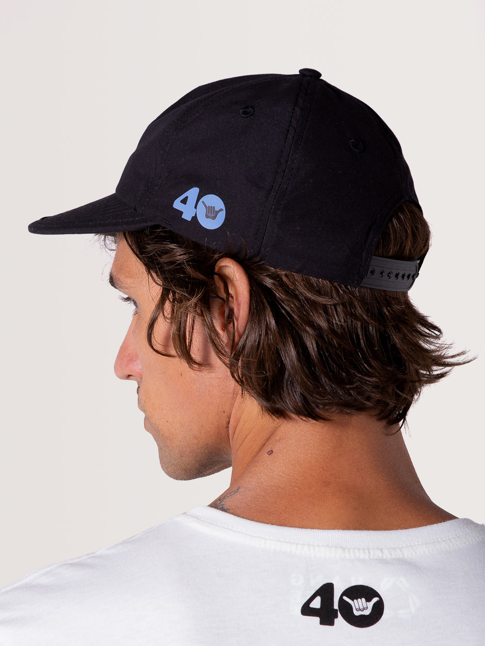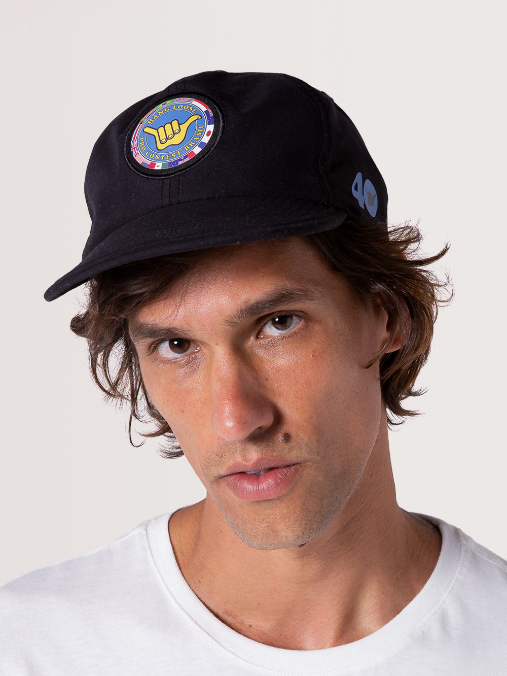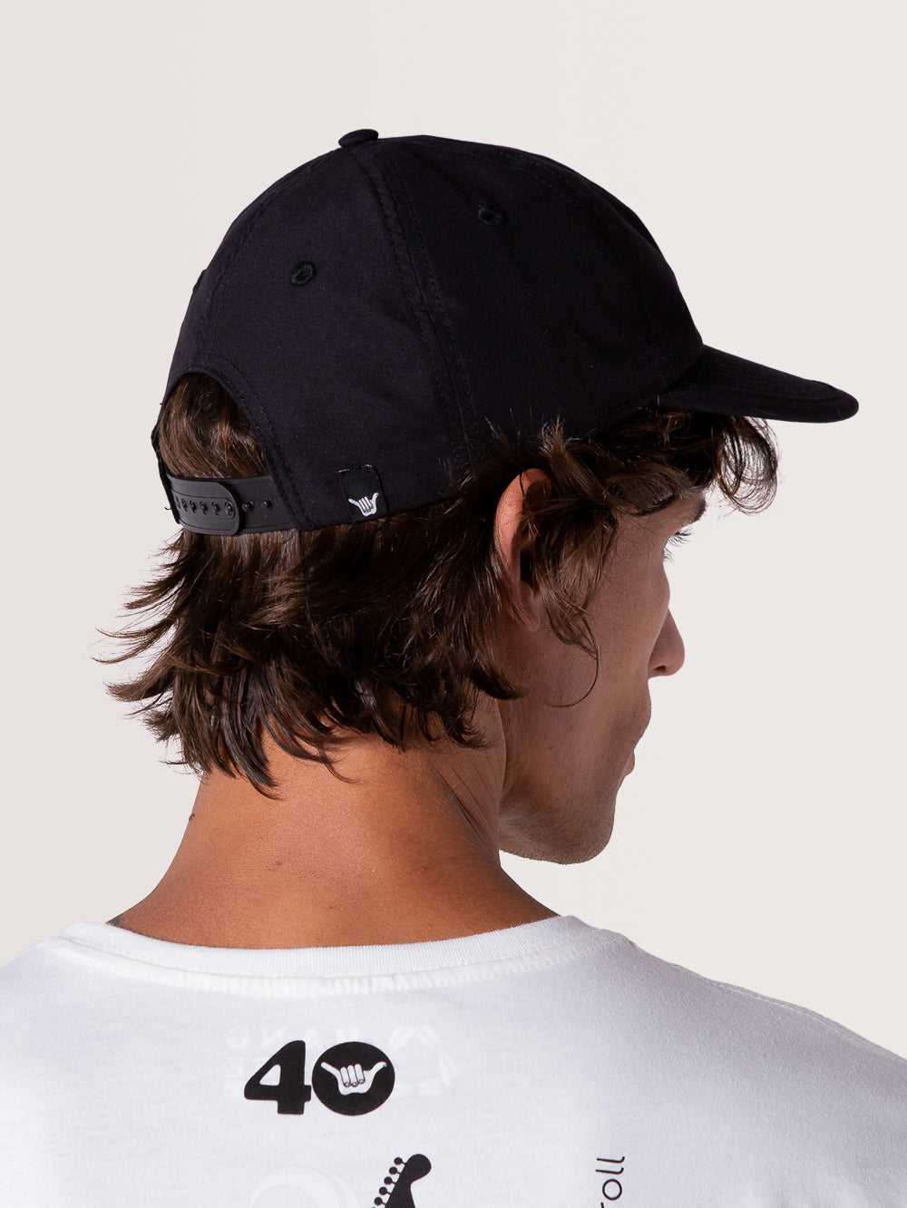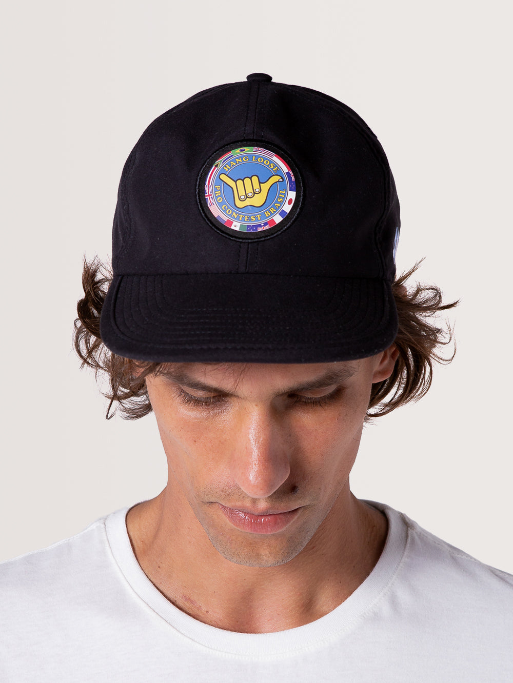 Boné Hang Loose Noronha 2, possui modelagem desconstruída, aba curva, tape personalizado, regulador e etiqueta Hang Loose.