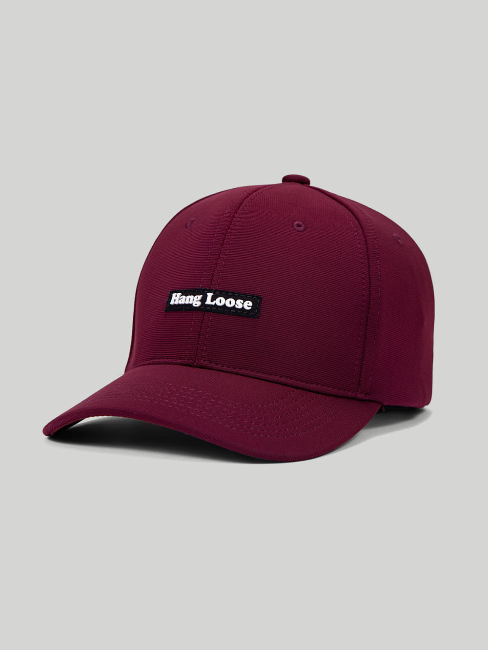 O Boné Hang Loose Typo Bordô. Confeccionado em tecido Ottoman, com uma modelagem snap back, viés interno personalizado, modelo com 6 gomos e estampa frontal em relevo.