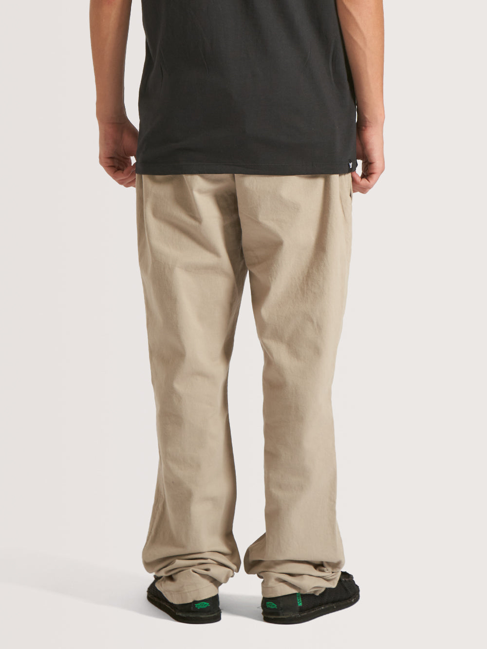 Calça Chino: Elegância casual em cada detalhe. Com modelagem reta e soltinha, proporciona conforto e estilo. Os bolsos faca na frente adicionam praticidade ao design. O bolso discreto nas costas, unilateral, com aplicação de etiqueta da marca acima, traz um toque autêntico. Seu fechamento por botão e zíper completa o visual clássico. Uma escolha sofisticada para diversas ocasiões.
