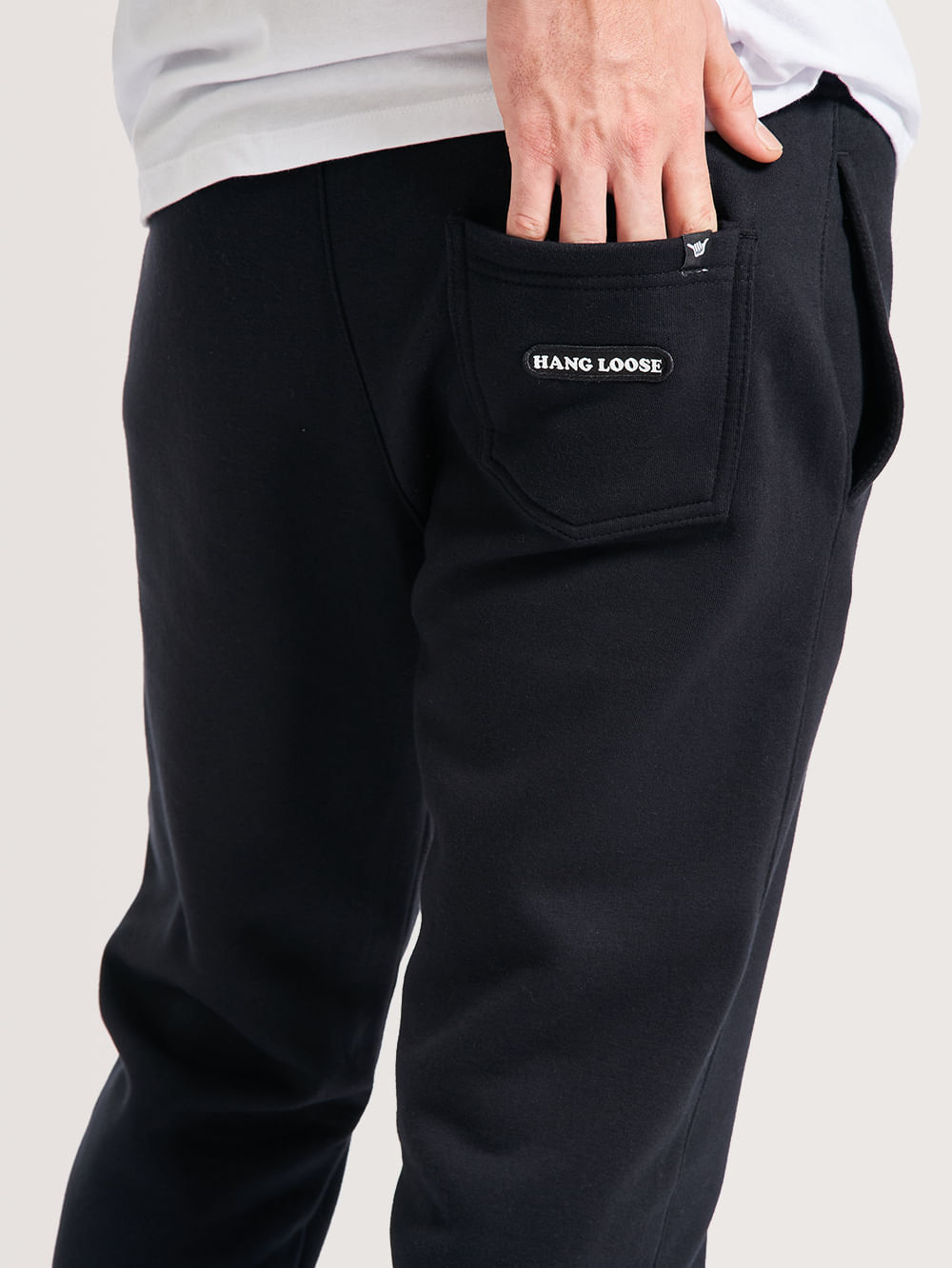 Calça Moletom Hang Loose Sound, possui cintura com elástico e cordão para ajuste, bolsos frontais, bolso traseiro com aplicação de etiqueta e etiquetas Hang Loose. Confeccionado em tecido moletom felpado grosso.