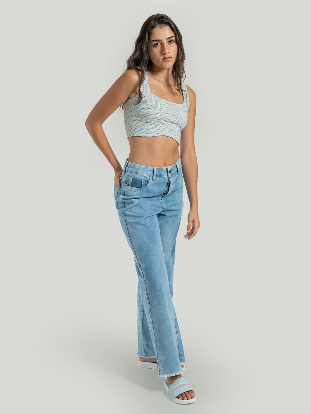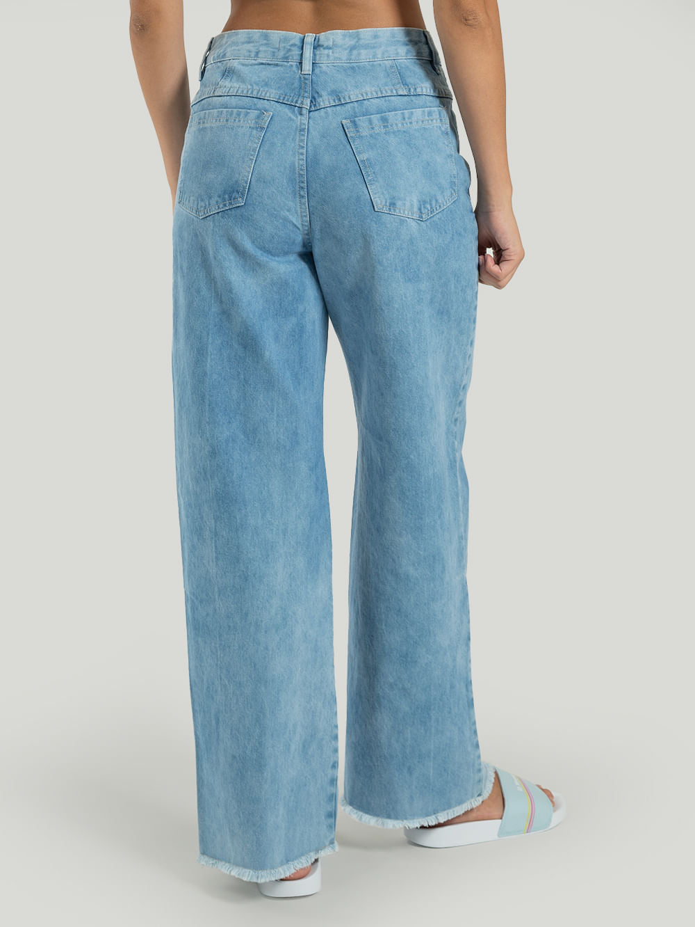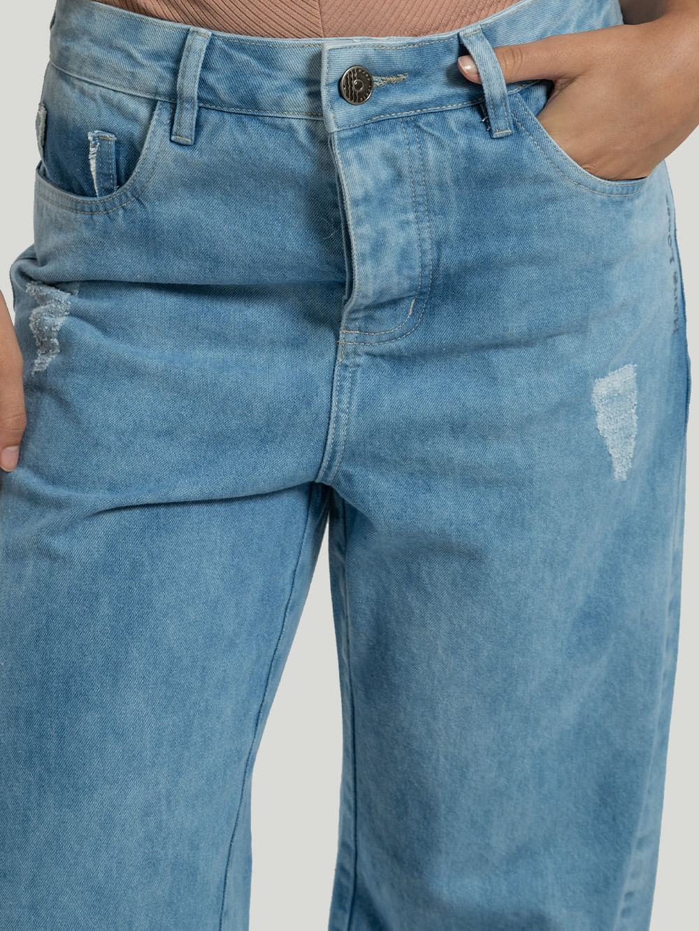 Nossa Calça Jeans Hang Loose Wide Leg, confeccionada em tecido algodão super confortável. Possui detalhes frontais e na barra.