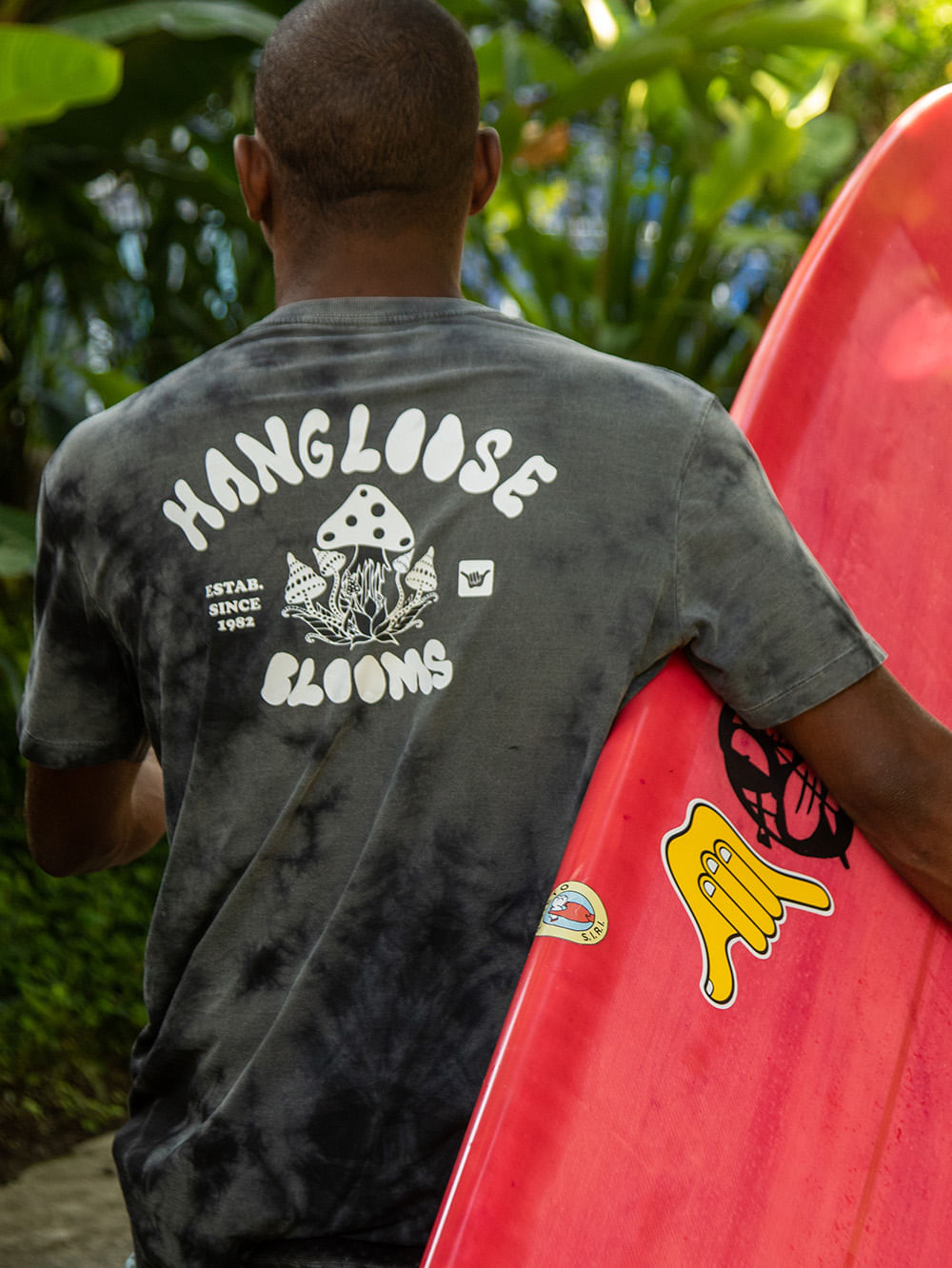 A Camiseta Especial Hang Loose Bloommer é feita em ½ malha com lavanderia tie dye, possui silk frontal e nas costas em 2 cores e etiqueta hang loose.