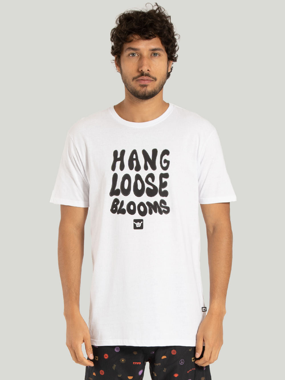 A nossa Camiseta Hang Loose Blooms, confeccionada em tecido ½ malha 30/1. Possui estampa em silk na frente e nas costas e etiqueta Hang Loose.