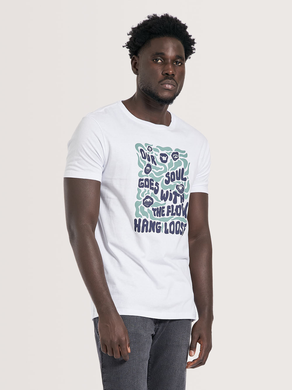 Camiseta Hang Loose Eyeonu, possui estampa em silk frontal e na nuca e etiqueta Hang Loose aplicada na lateral. Confeccionada em tecido algodão.