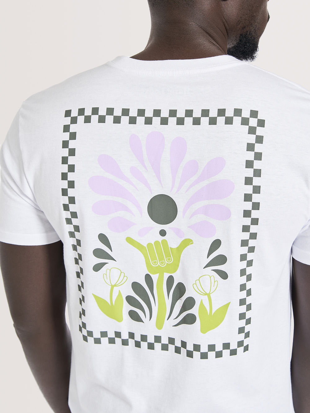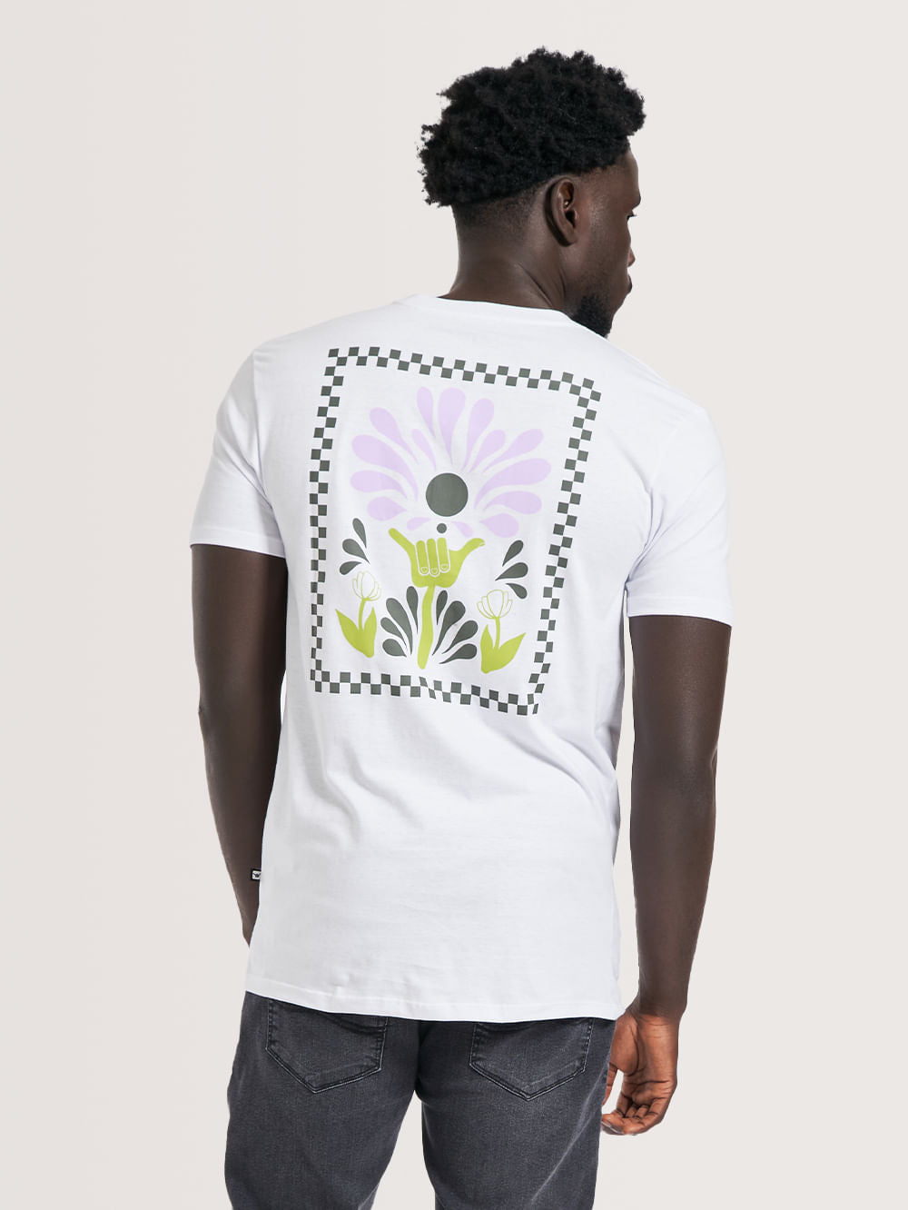 Camiseta Hang Loose Flowerpower, possui estampa em silk frontal e nas costas e etiqueta Hang Loose aplicada na lateral. Confeccionada em tecido algodão.