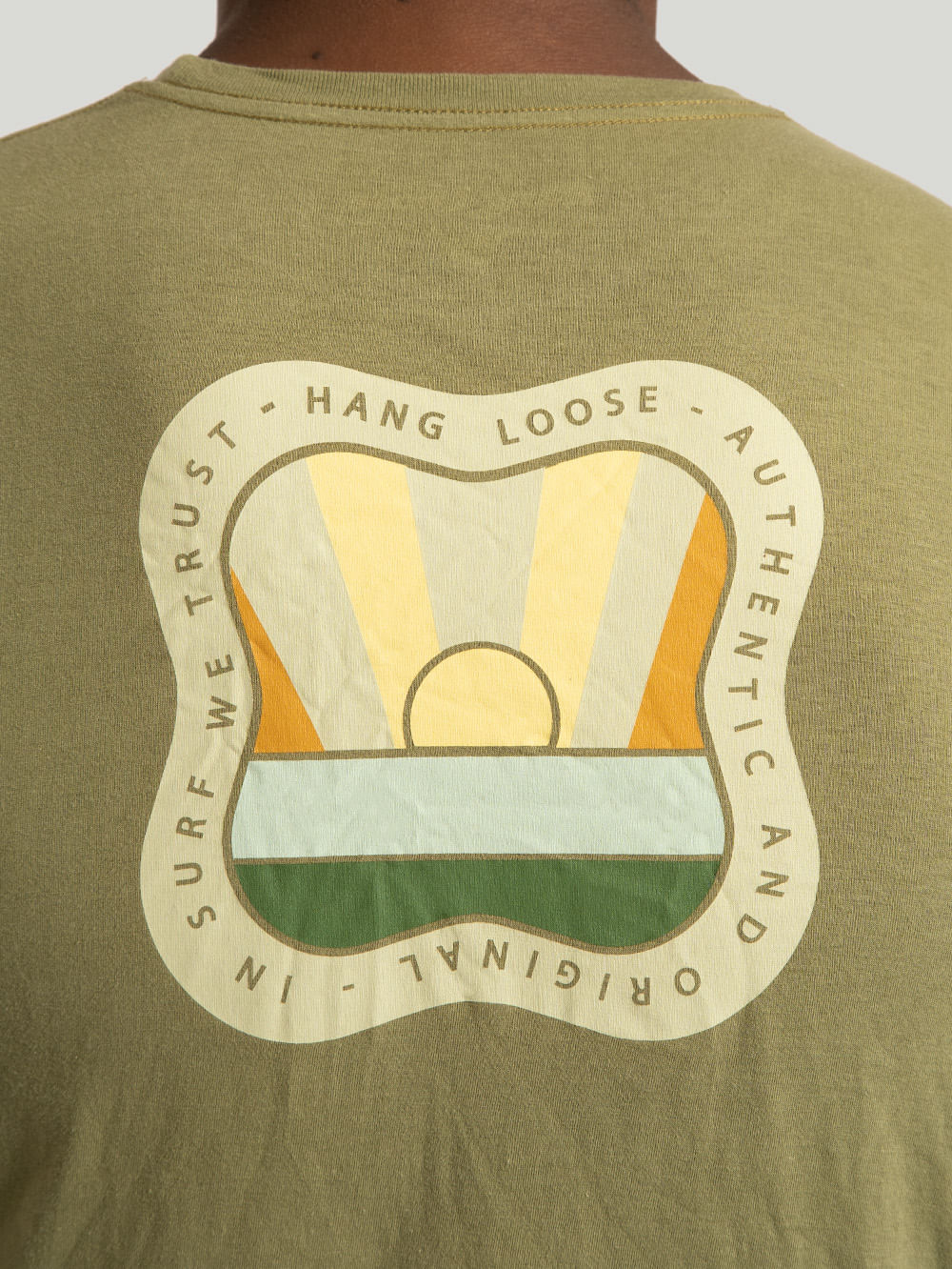 A Camiseta Hang Loose Laplaya é feita em 1/2 malha 30/1, possui silk frontal de cor única, silk nas costas de 5 cores e etiqueta Hang Loose.