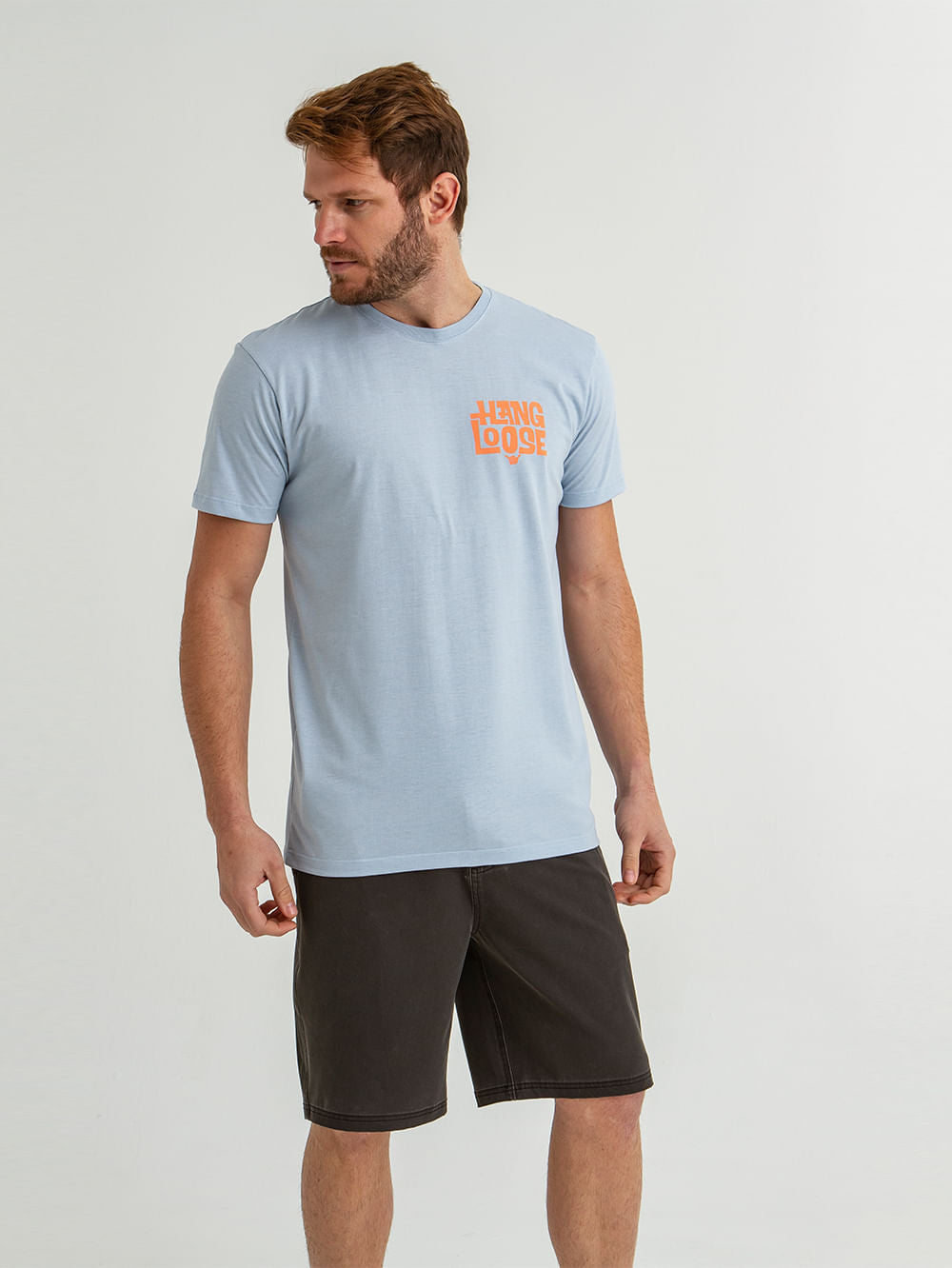 Camiseta Hang Loose Lettering Azul. Confeccionada em meia malha de algodão, a camiseta Lettering possui silk frontal e nas costas e etiqueta Hang Loose.