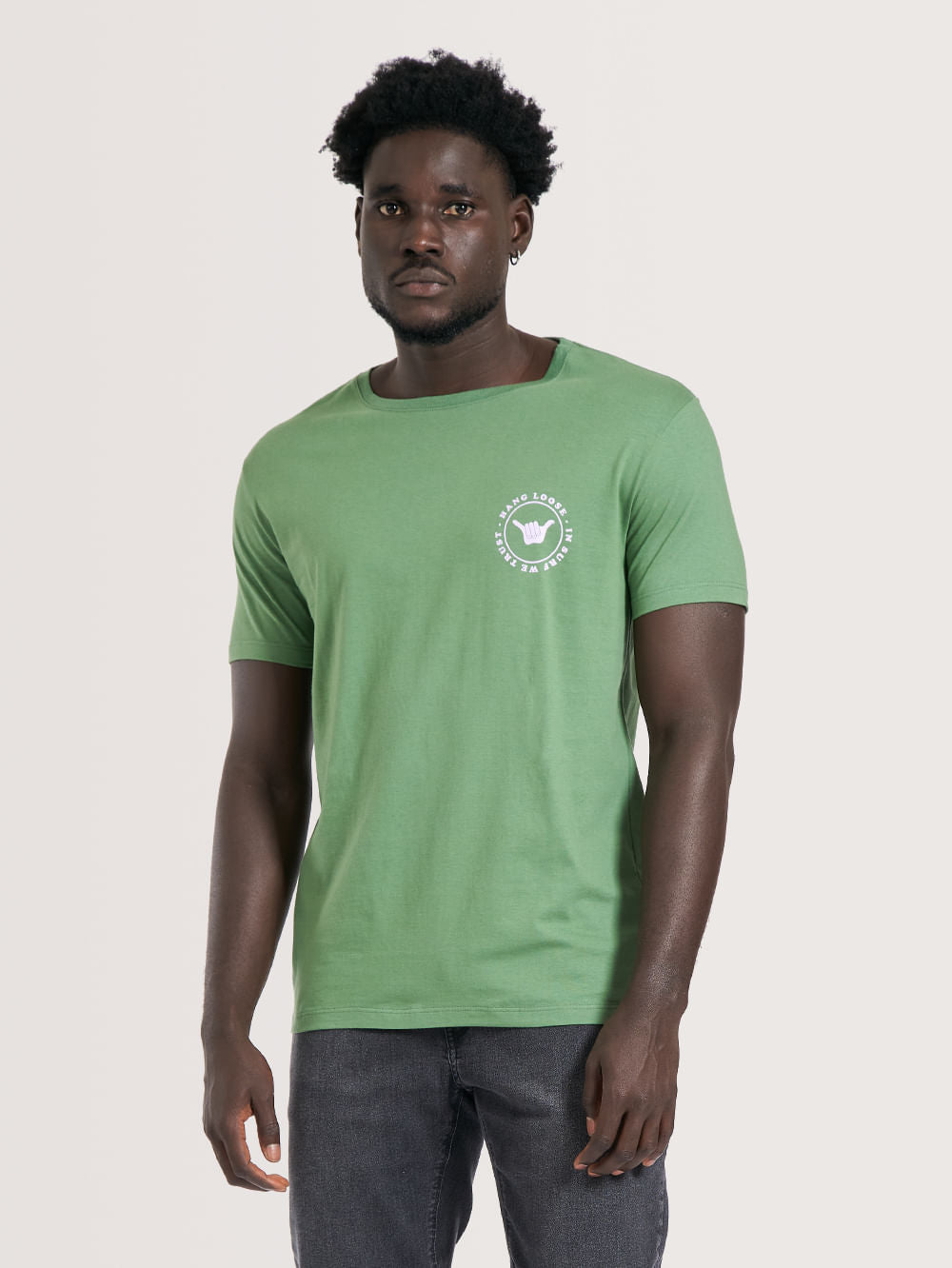 Nossa Camiseta Hang Loose Round possui estampa frontal e etiqueta Hang Loose. Confeccionada em meia malha de algodão muito confortável.