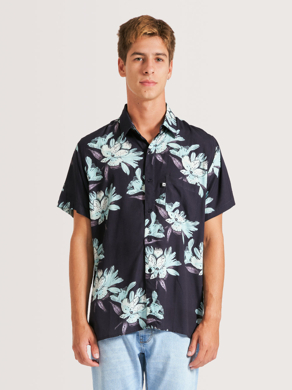 Camisa Hang Loose Florida, possui abertura frontal em botões, silk full print, bolso frontal com etiqueta, etiqueta superior e inferior nas costas. Confeccionada em tecido viscose.