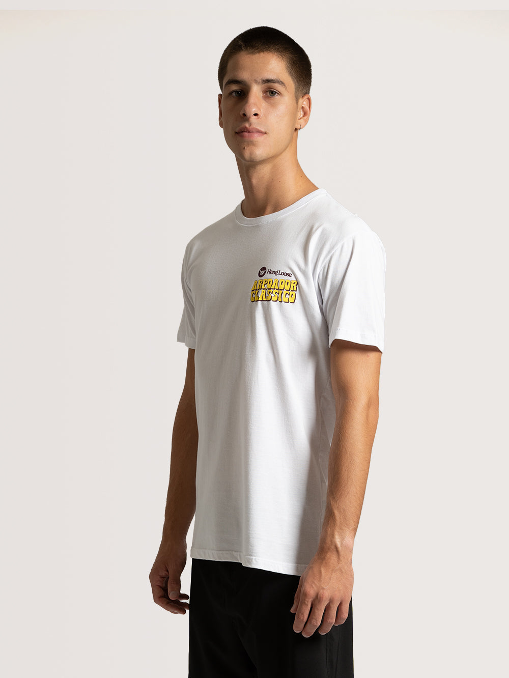 A camiseta Hang Loose Manga Curta Arpoador 1 é uma blusa exclusiva da coleção Arpoador Clássico, um tributo especial à cultura do surf na icônica praia do Arpoador, no Rio de Janeiro. Com estampa frontal e nas costas, a arte exclusiva Hang Loose captura a essência do evento, celebrando o espírito do surf e a lendária praia carioca.