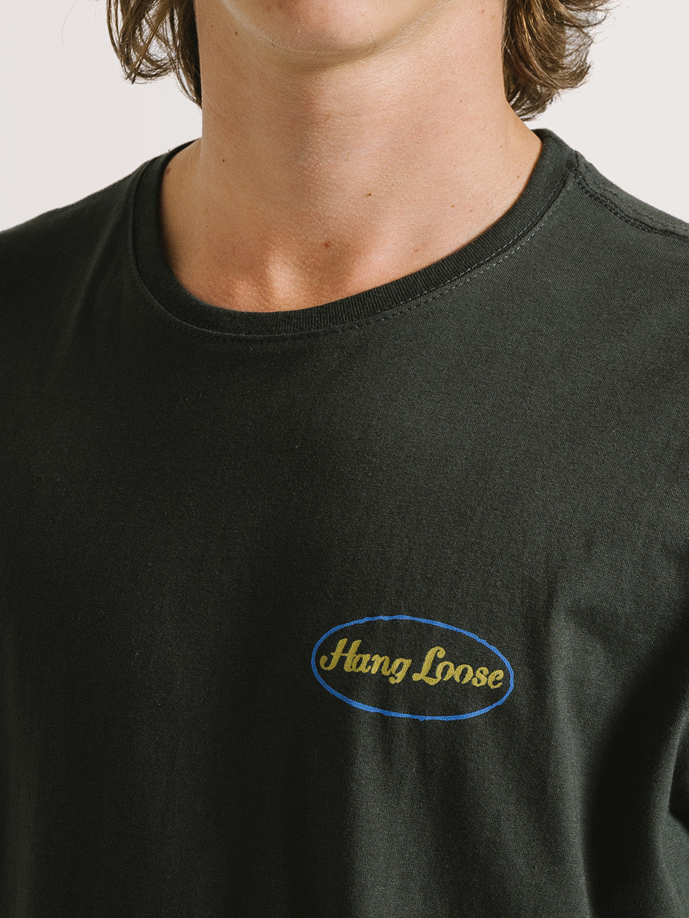 Camiseta Hang Loose Cali, possui estampa em silk frontal e nas costas e etiquetas Hang Loose. Confeccionada em tecido meia malha 30/1.