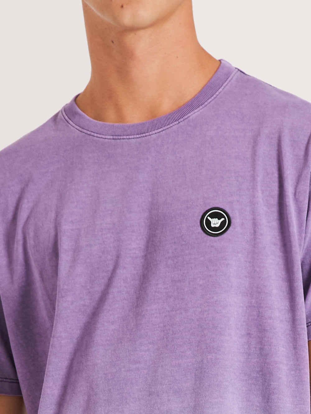 Camiseta Hang Loose Haze, possui etiqueta redonda aplicada na parte frontal e etiqueta Hang Loose na lateral. Confeccionada em tecido meia malha estonada.