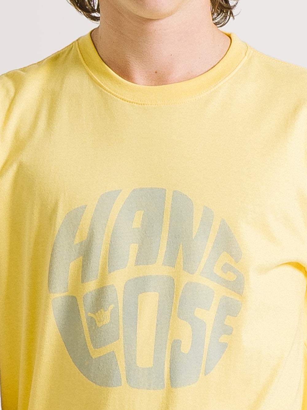 Camiseta Hang Loose Rounded, possui estampa em silk frontal e na nuca e etiquetas Hang Loose. Confeccionada em tecido meia malha 30/1.