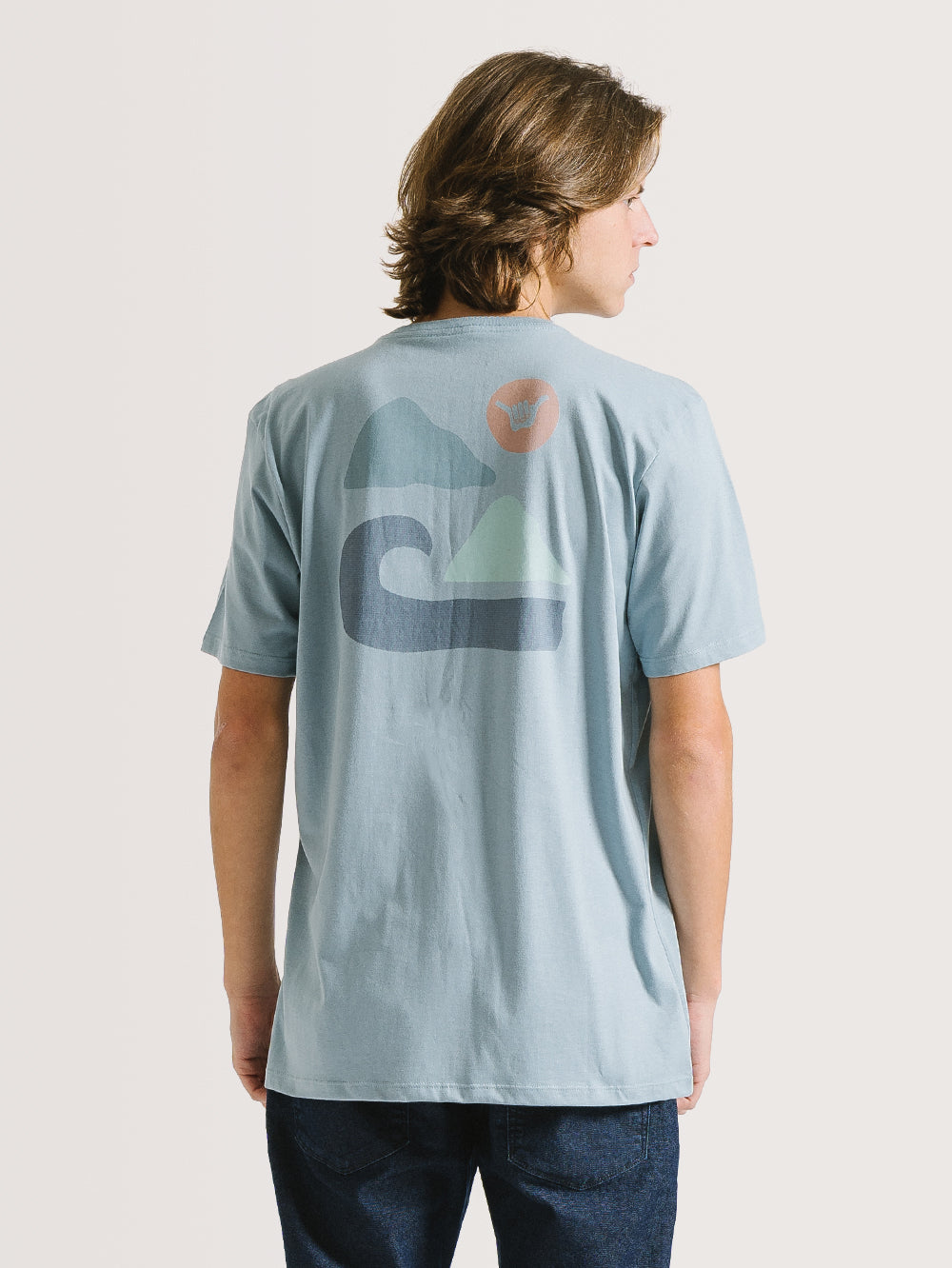 Camiseta Hang Loose Sun, possui estampa em silk frontal e nas costas e etiquetas Hang Loose. Confeccionada em tecido meia malha 30/1.