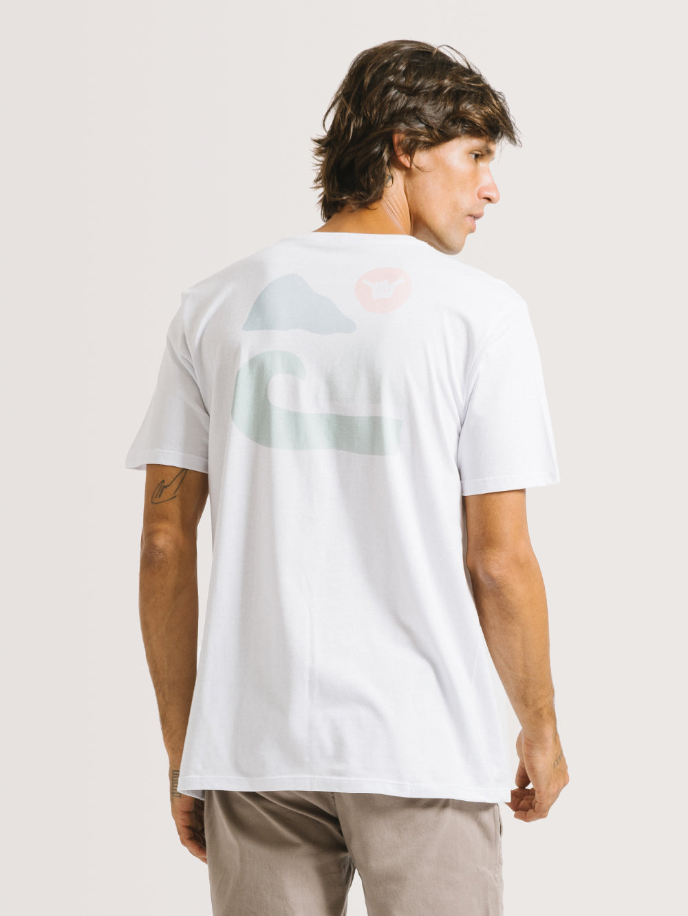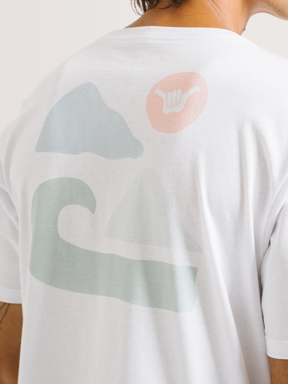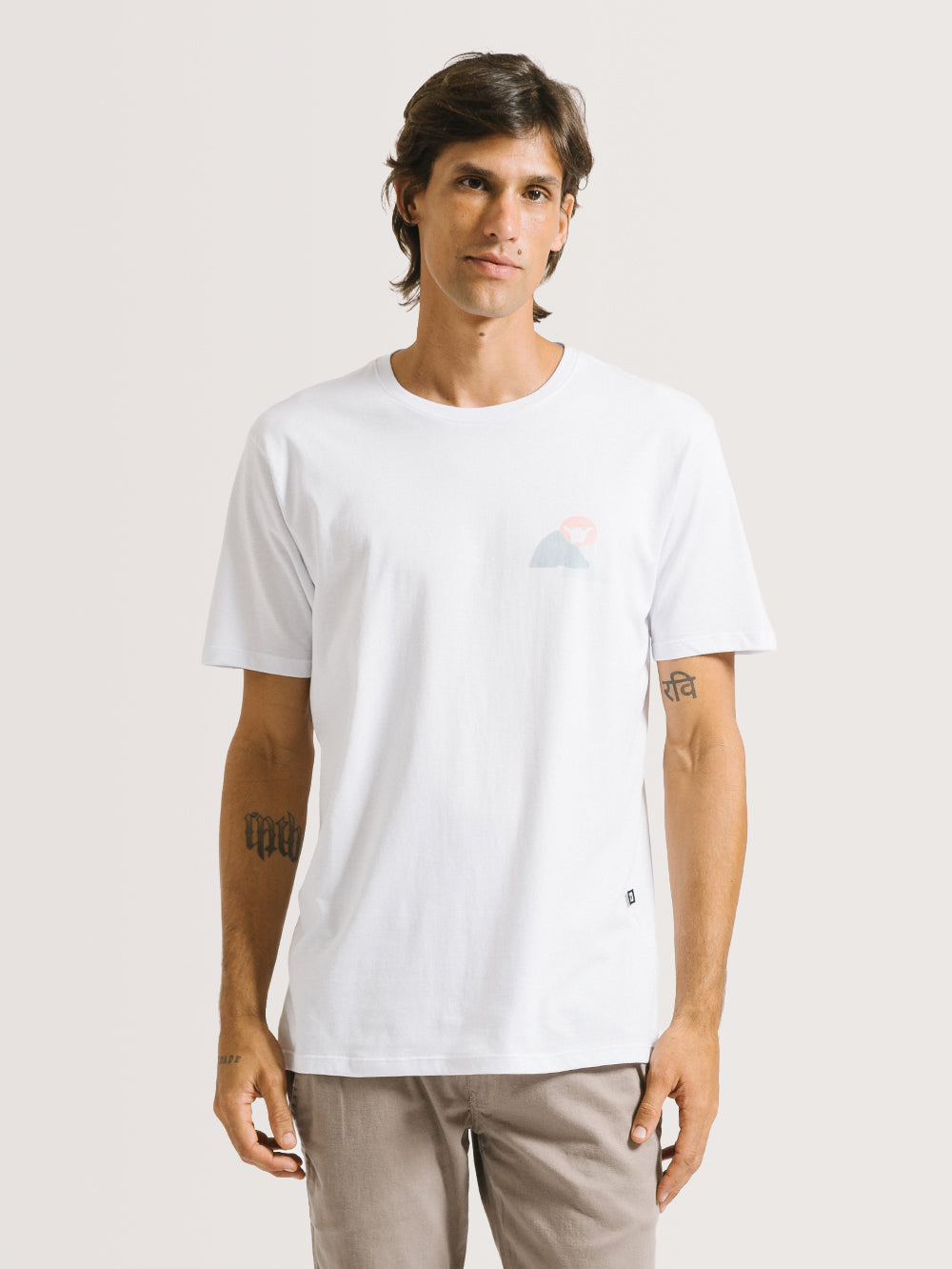 Camiseta Hang Loose Sun, possui estampa em silk frontal e nas costas e etiquetas Hang Loose. Confeccionada em tecido meia malha 30/1.