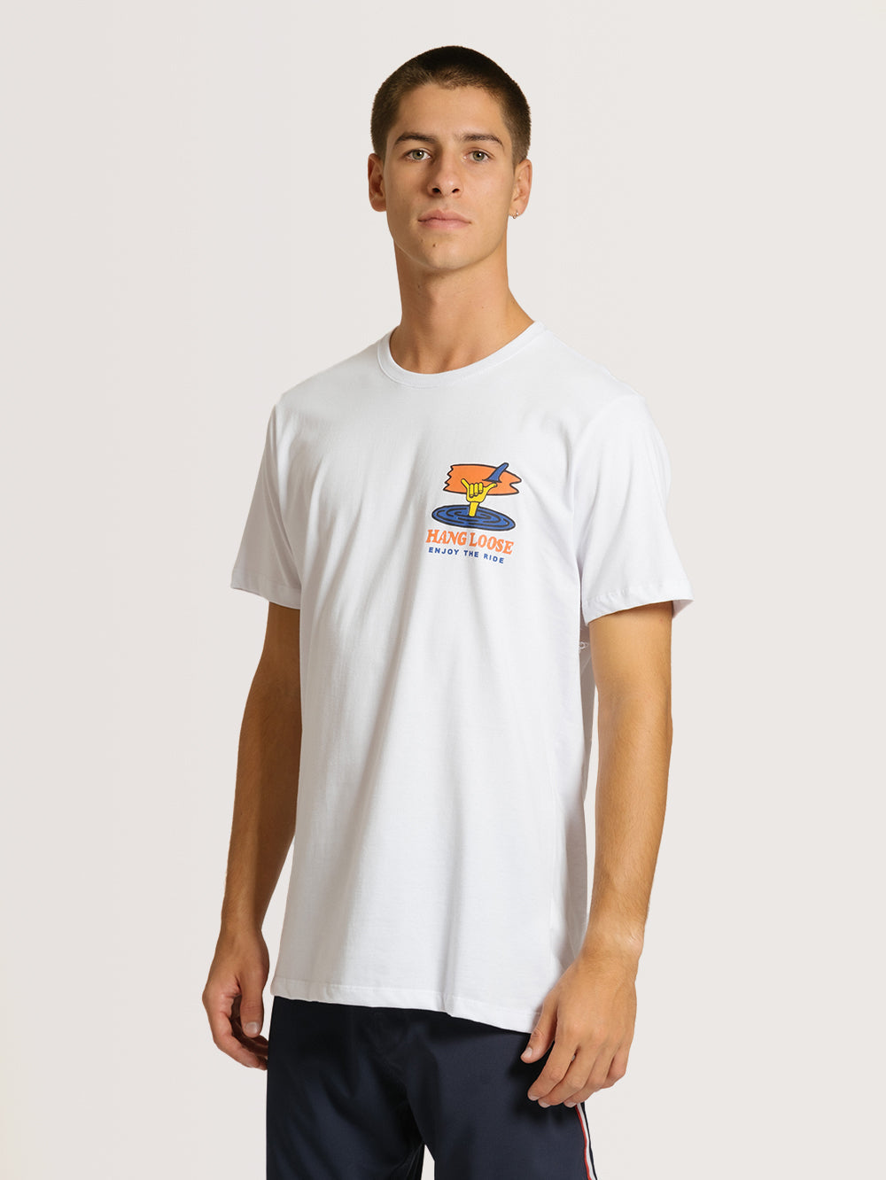 Camiseta Hang Loose The Ride: sinta a qualidade do algodão em uma experiência única. Destaque para a estampa descontraída no peito, transmitindo um toque casual e versátil. Detalhe exclusivo da etiqueta Hang Loose, garantindo autenticidade. Confeccionada em meia malha de algodão para conforto incomparável. Desfrute da qualidade das camisetas Hang Loose.