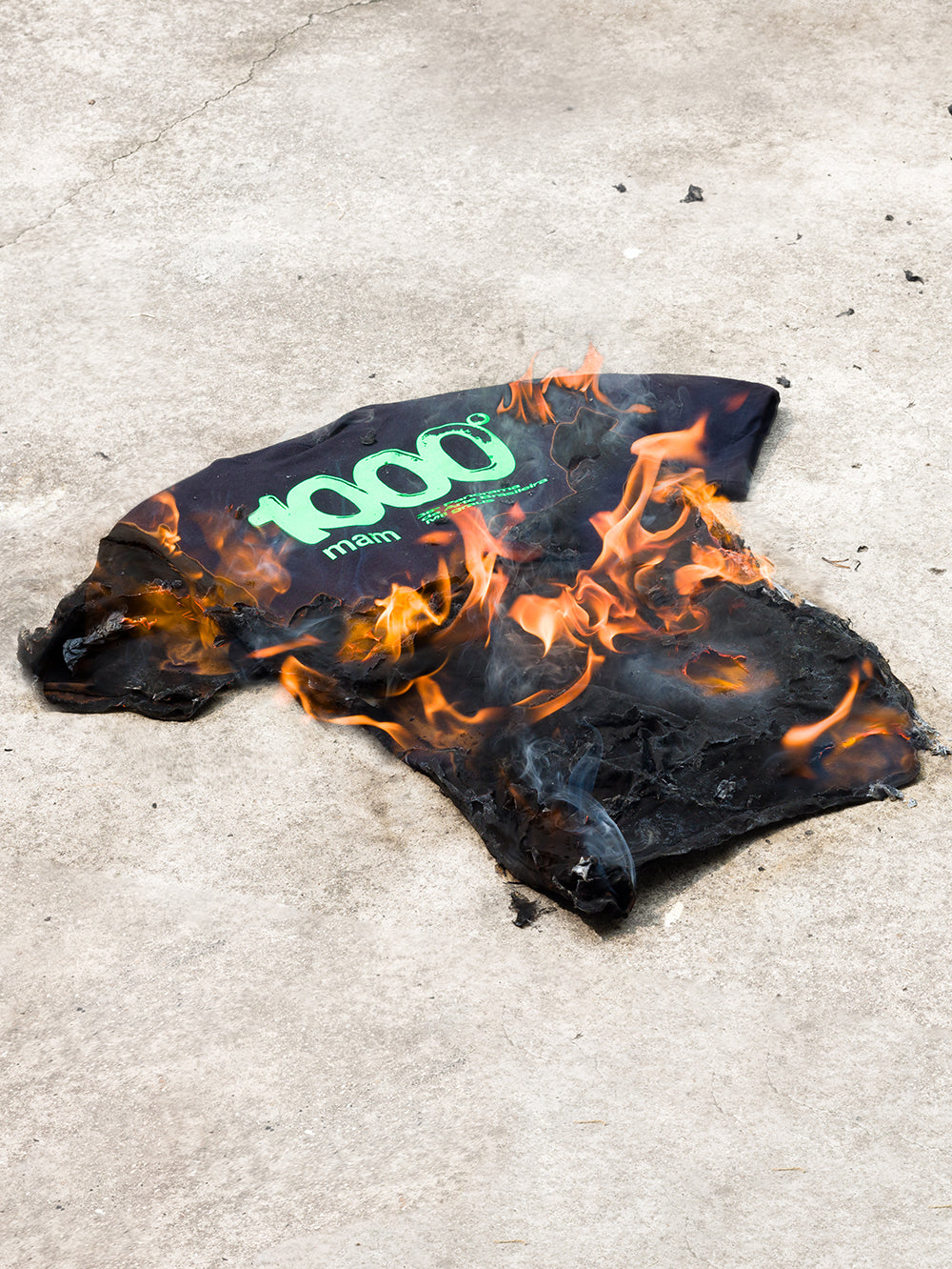 Confeccionada em algodão de meia malha ecológica, a camiseta combina sustentabilidade e expressão artística. Com estampas exclusivas na frente e nas costas, ela materializa a temática 1000º (Mil Graus) do 38º Panorama da Arte Brasileira, trazendo esse movimento moderno para o seu cotidiano.