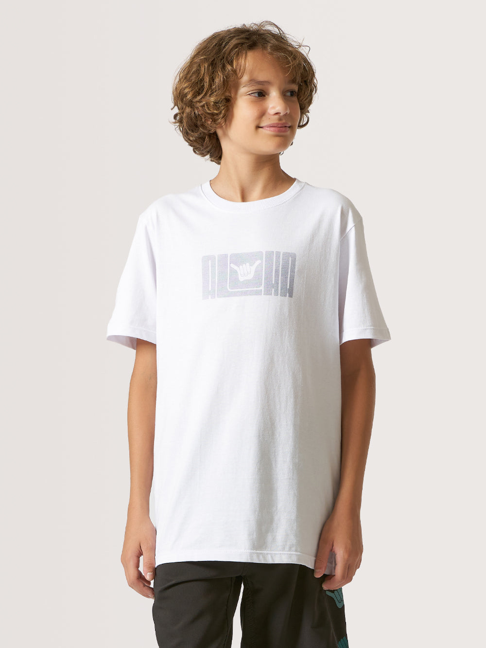 Camiseta Juvenil Hang Loose Aloha, possui estampa em silk frontal e na nuca e etiquetas Hang Loose. Confeccionada em tecido meia malha 30/1.