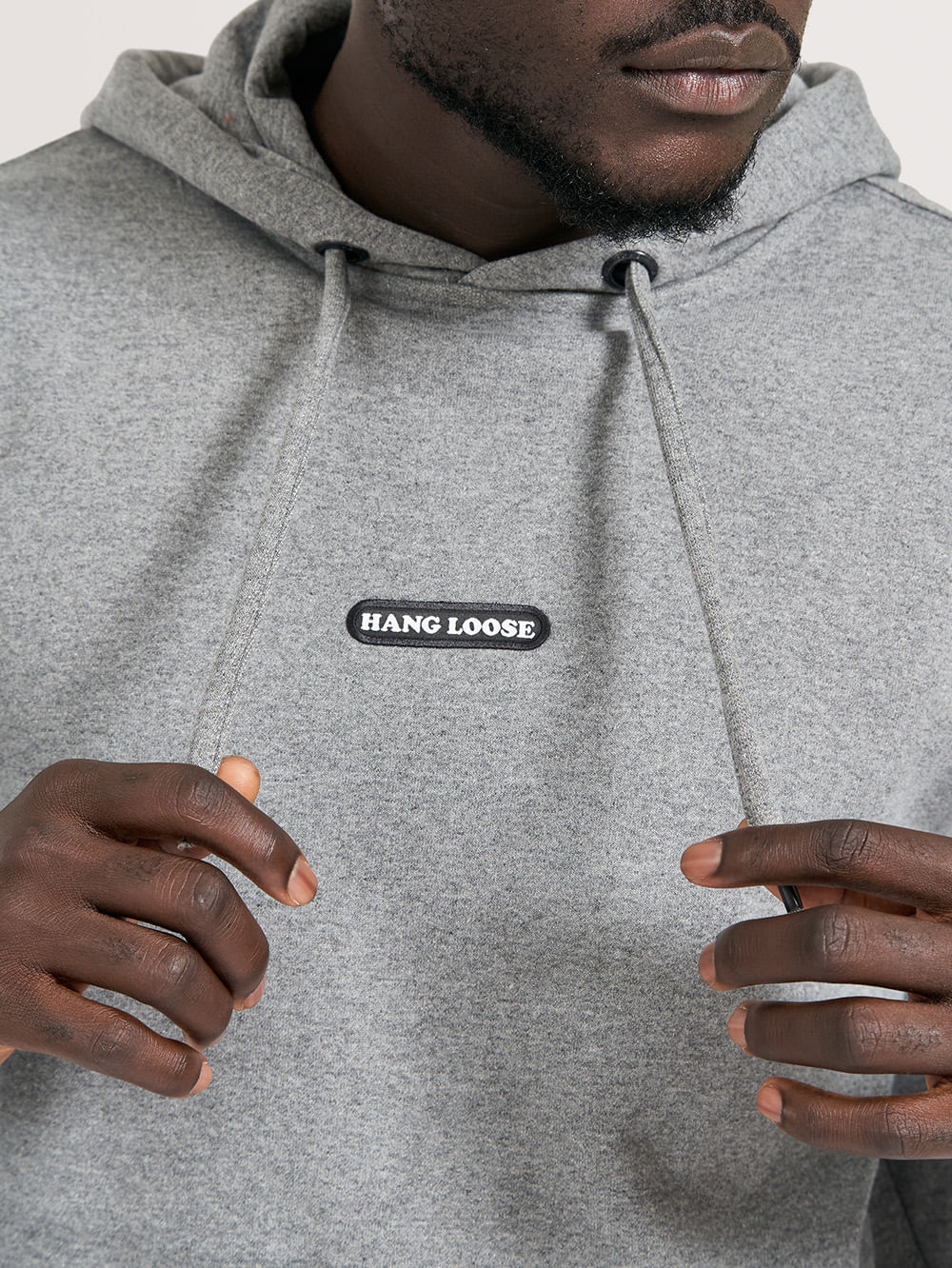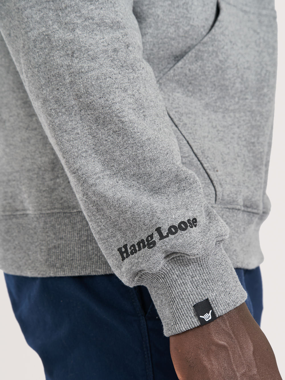 Moletom Canguru Hang Loose Low, possui capuz, bolso canguru, aplicação de patch frontal, ilhós e ponteira personalizada, aplicação de etiqueta nas costas, estampa em silk na manga e no capuz e etiquetas Hang Loose.