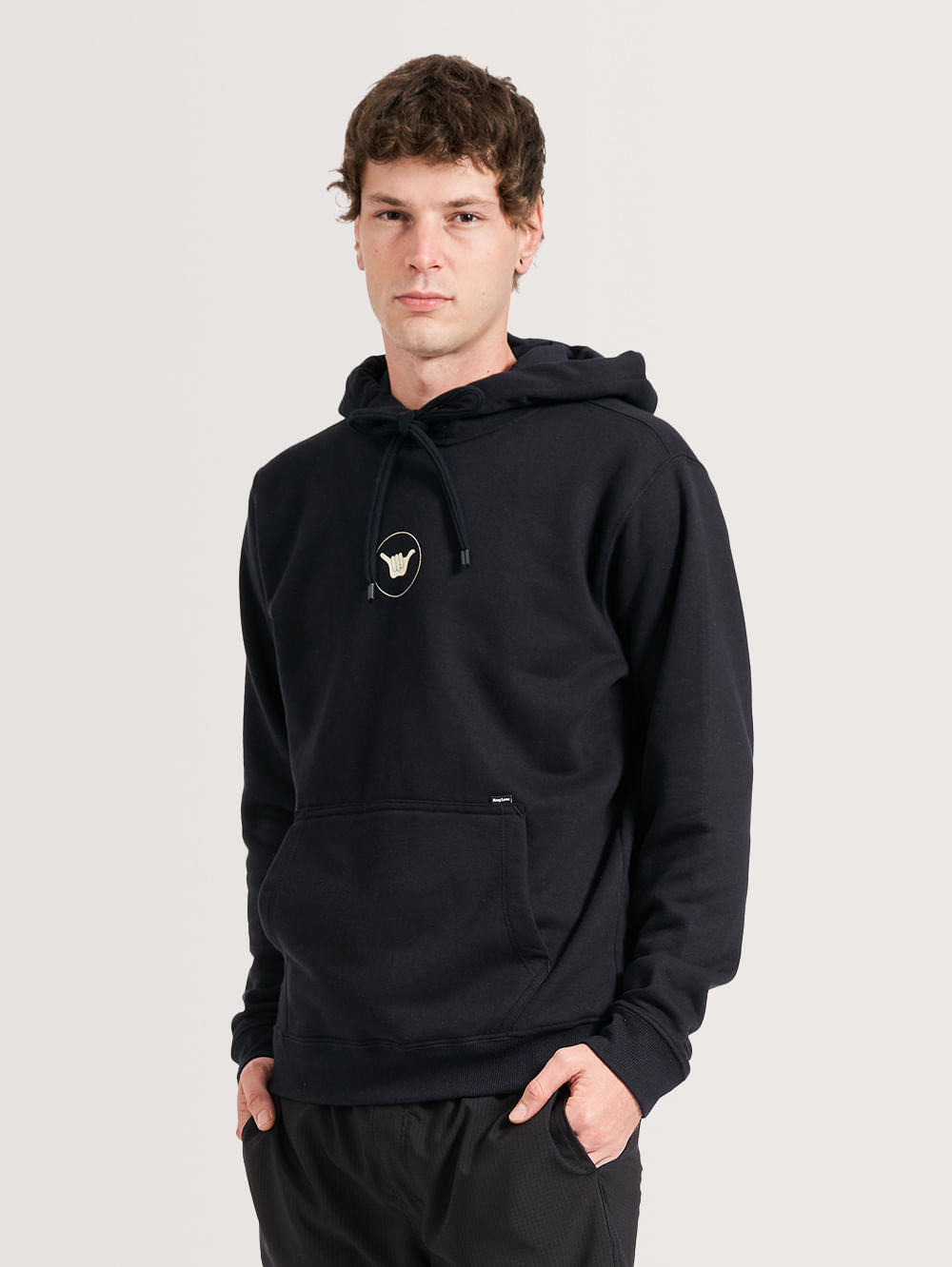 Moletom Canguru Hang Loose Yin, possui capuz, bolso canguru, estampa em silk frontal e nas costas, ilhós e ponteira personalizada e aplicação de etiqueta nas costas. Confeccionado em tecido felpado 320 gramas.