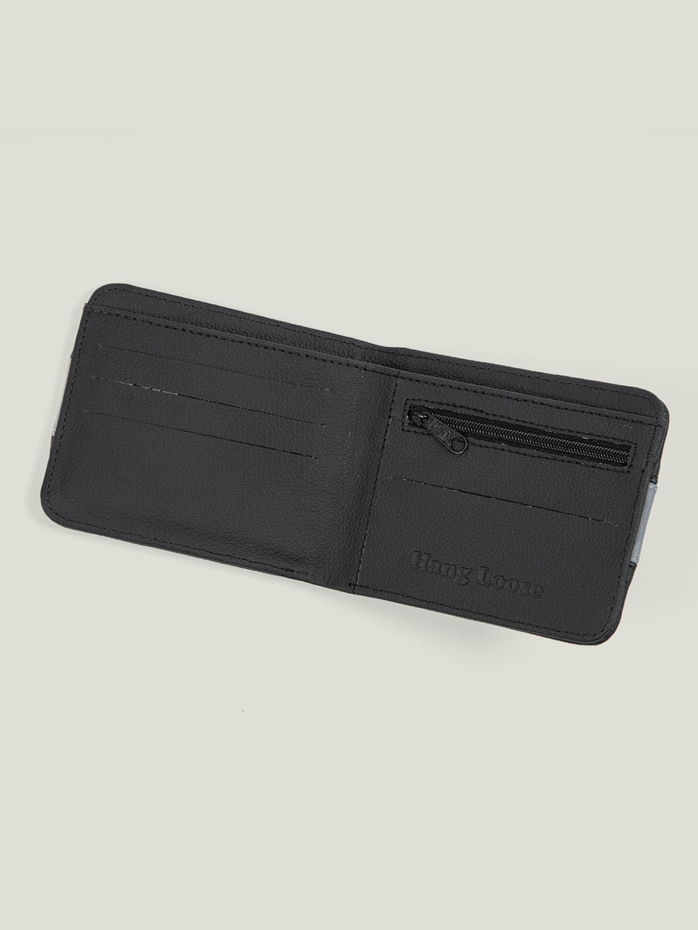 A Carteira Hang Loose Over é feita de couro sintético, posusi faixa recorte bicolor, divisórias internas para cartões plástico para documentos destacável e aplicação metal Hang Loose