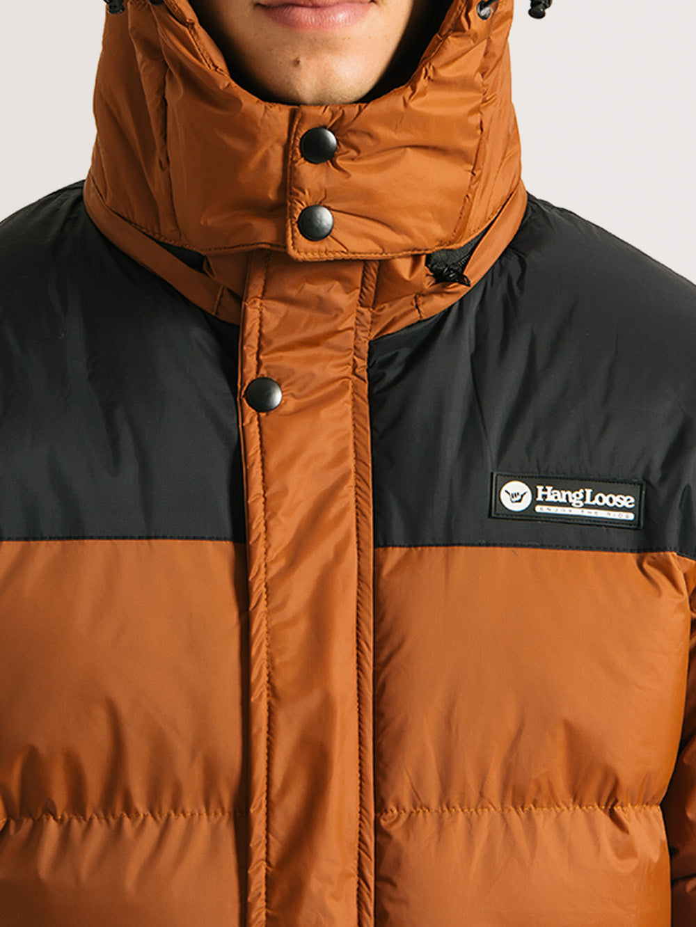 A Jaqueta Brow traz a essência da galera que valoriza o estilo. Importada, forrada com manta matelassê estilo bomber e recorte bicolor para incentivar a autenticidade. Fechamento frontal em zíper e botões de metal, capuz destacável para aproveitar o tempo de qualidade. Destaque para o heat transfer no peito e etiquetas Hang Loose.
