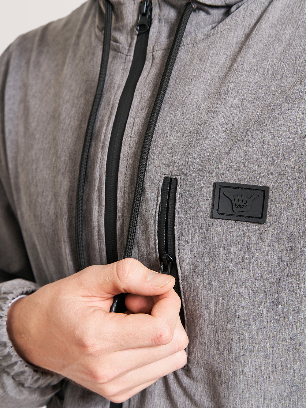 Jaqueta Hang Loose Zip, possui abertura frontal com zíper, bolso com zíper no peito, aplicação de etiqueta no peito, capuz, manga com punho em elástico e forro de tela. Confeccionada em tecido 4Way-Stretch Mesclado muito confortável.