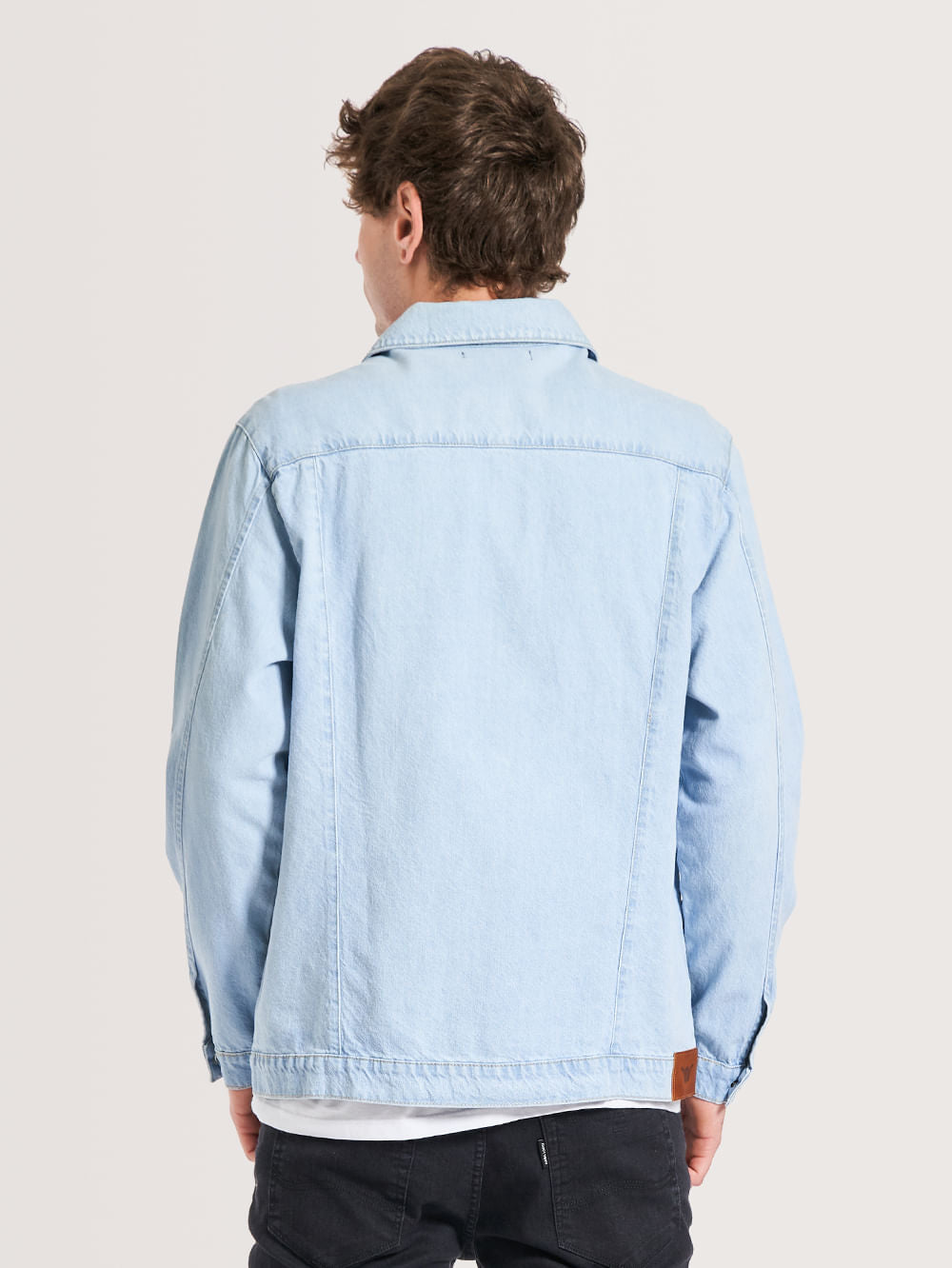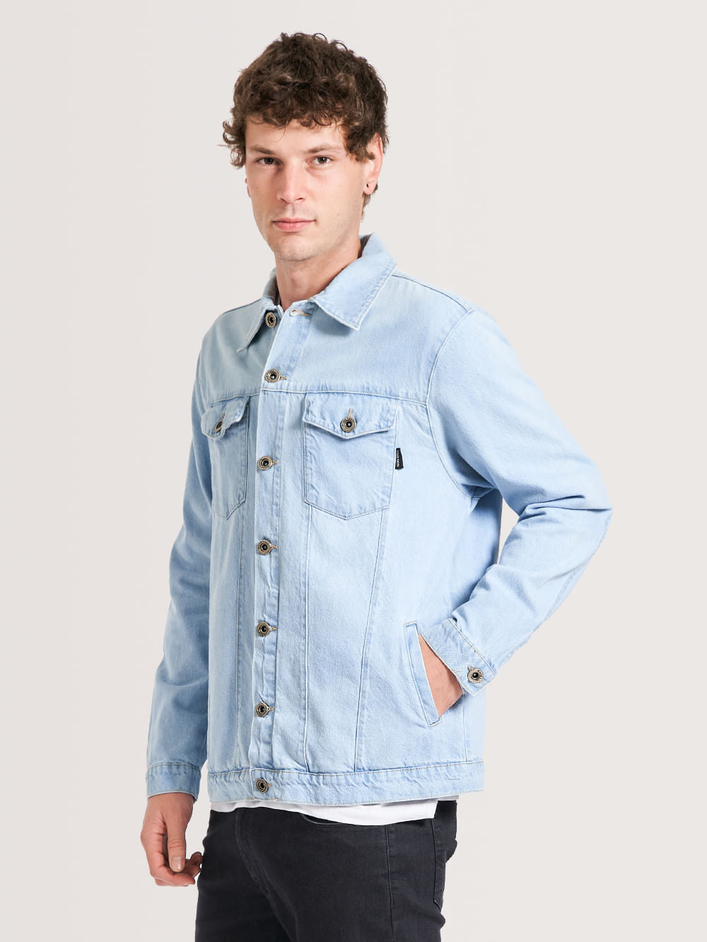 Jaqueta Jeans Hang Loose. Possui modelagem regular, bordado Hang Loose nas costas, punho com ajuste em botão e fechamento em botão.