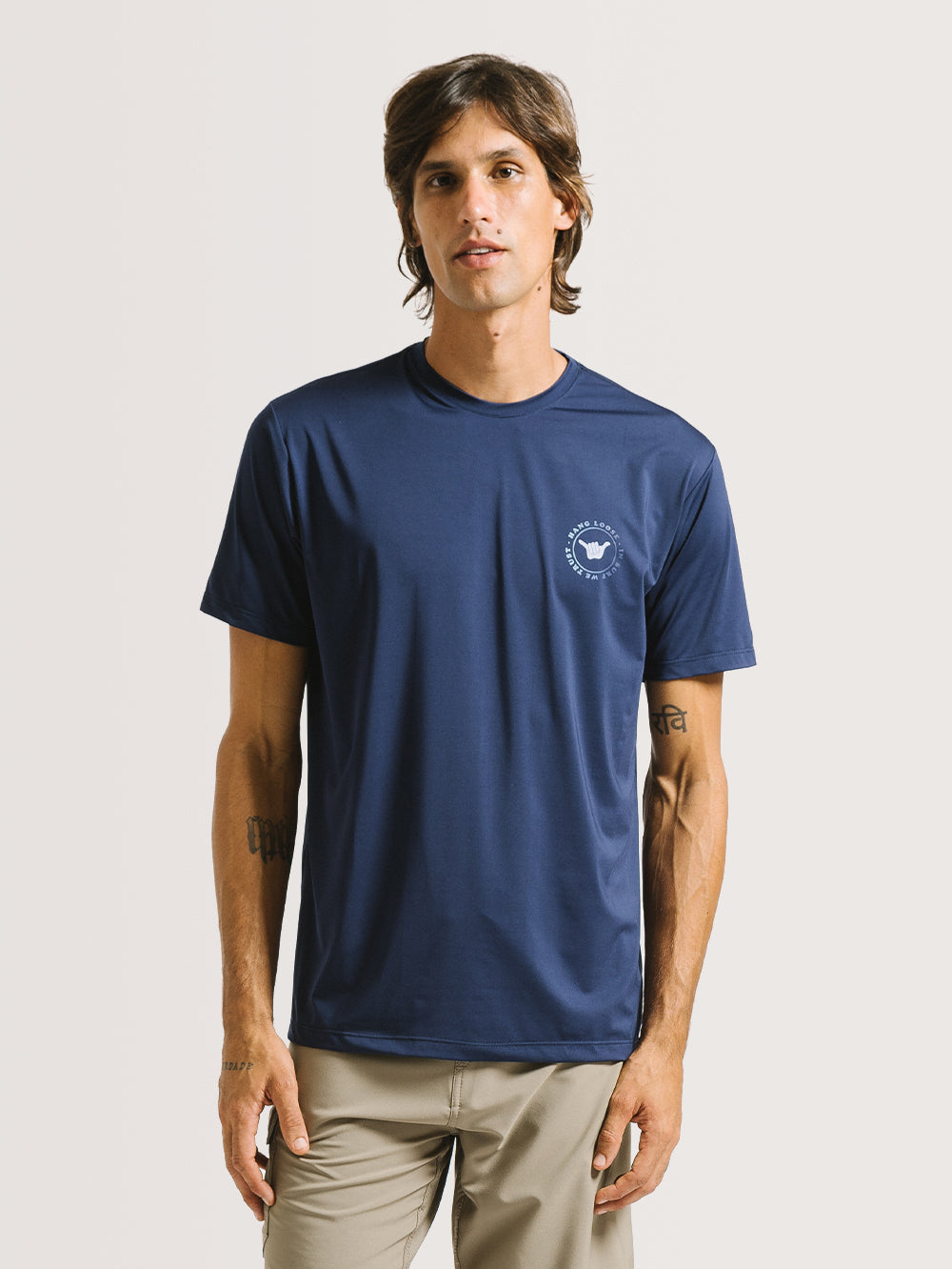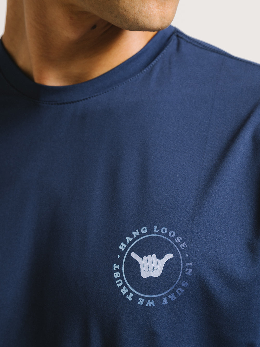 Lycra Hang Loose Surfing, possui modelagem básica, tecido com malha de tratamento UV50, manga curta e silk frontal e na nuca.