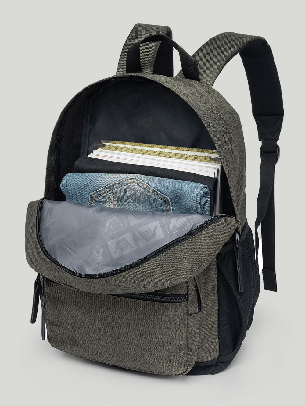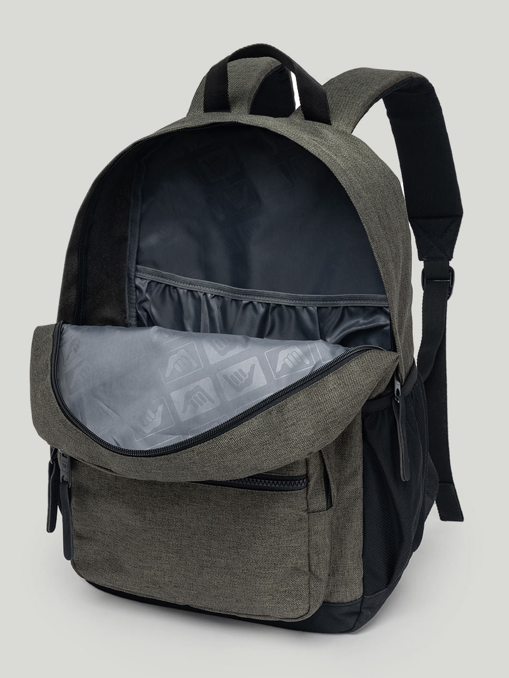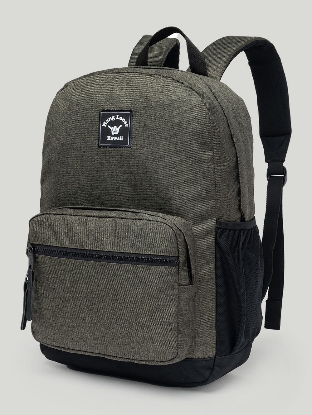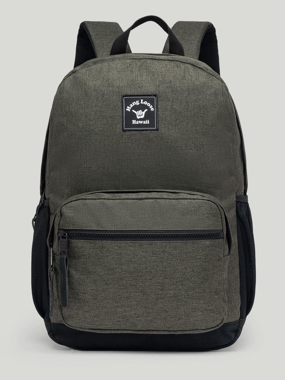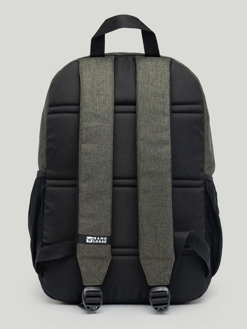 Mochila Hang Loose Keel Verde. Confeccionada em algodão. Conta com zípers personalizados, compartilhamento para notebook até 18 polegadas, patch frontal, aplicação de etiquetas e múltiplos bolsos. Possui 51 cm de altura, 33 cm de largura e 17 cm de profundidade, com capacidade de 28,5 litros.