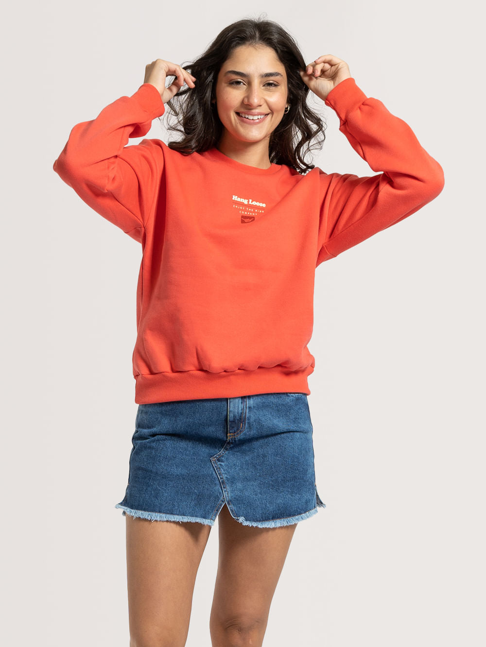 Moletom Hang Loose Basic, possui estampa frontal e etiqueta Hang Loose. Confeccionado em tecido algodão e poliéster.