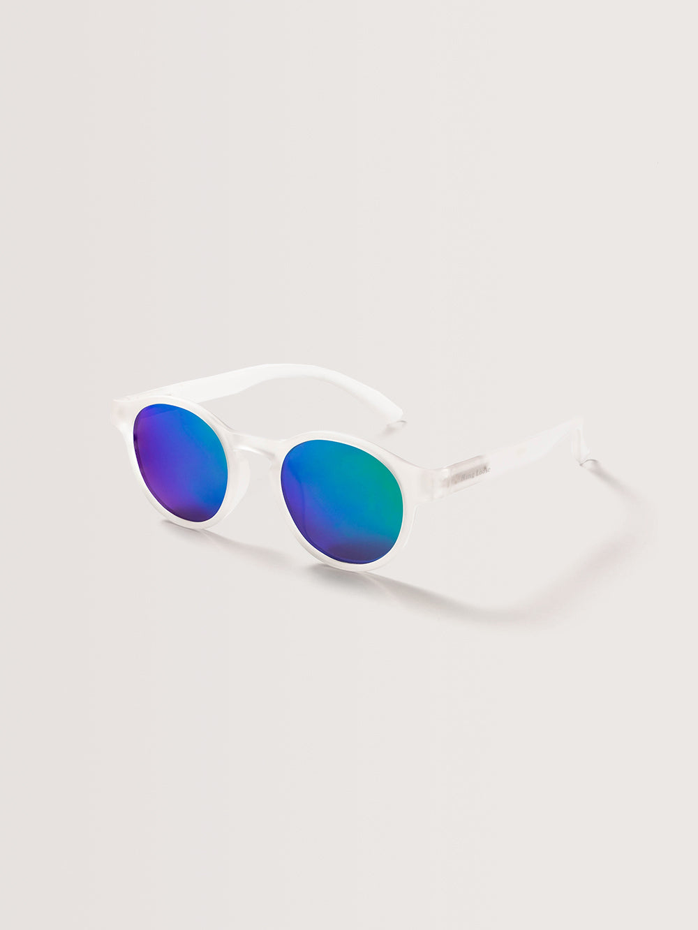 Óculos Hang Loose Ocean é composto por acetato. O óculos possui proteção UV 400, armação em cor transparente fosca e lentes polarizadas na cor azul espelhada