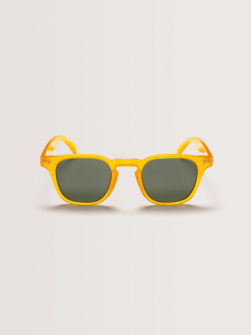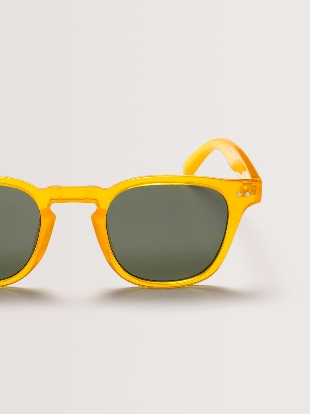 Óculos Hang Loose Summer é composto por acetato. O óculos possui armação leve e flexível em cor amarela e lentes polarizadas na cor verde.