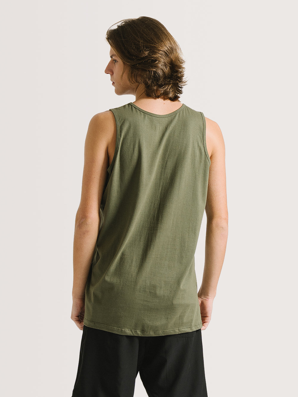 Regata Hang Loose Dublog, possui estampa em silk frontal e etiqueta Hang Loose na lateral. Confeccionada em tecido meia malha 30/1.