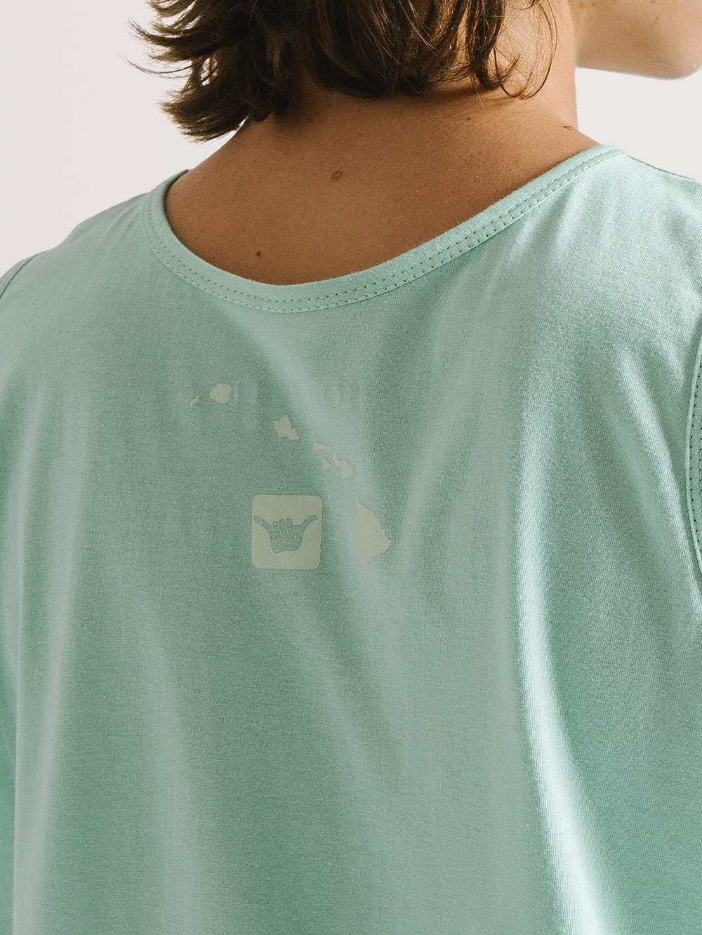 Regata Hang Loose Hawaii, possui estampa em silk frontal e na nuca e etiqueta Hang Loose na lateral. Confeccionada em tecido meia malha 30/1.