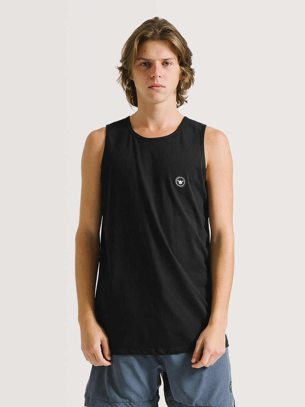 Regata Hang Loose Logolabel, possui etiqueta redonda aplicada na parte frontal e etiqueta Hang Loose na lateral. Confeccionada em meia malha 30/1.