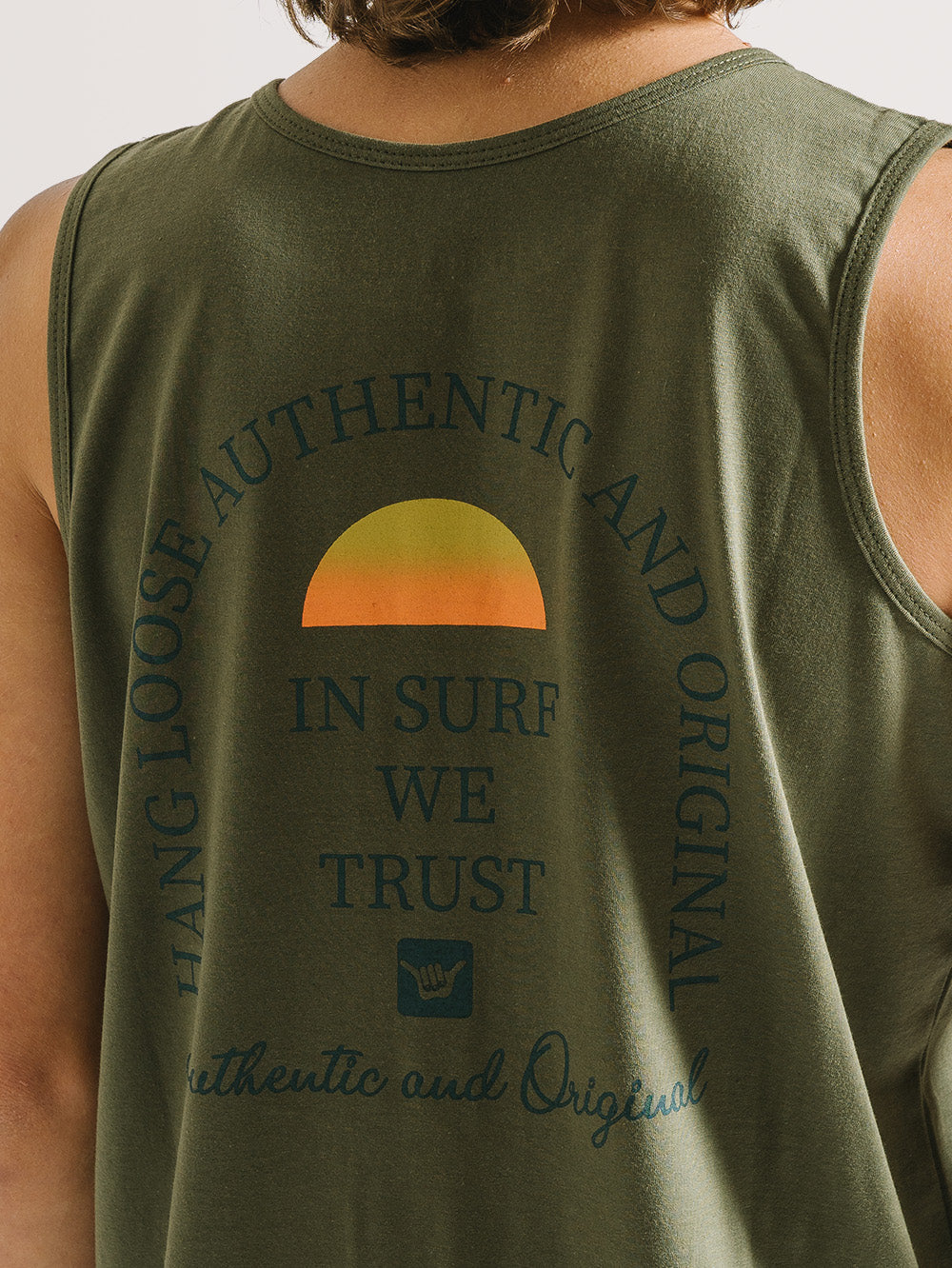 Regata Hang Loose Sunshine, possui estampa em silk frontal e nas costas e etiqueta Hang Loose na lateral. Confeccionada em tecido meia malha 30/1.