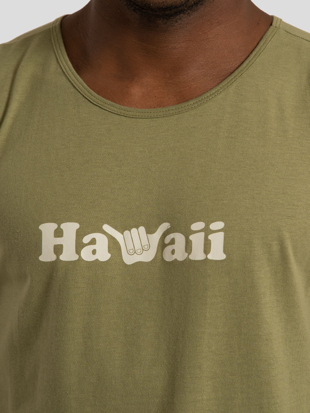 A Regata Hang Loose Hawaii é feita em ½ malha 30/1, possui silk frontal de cor única e etiqueta Hang Loose.