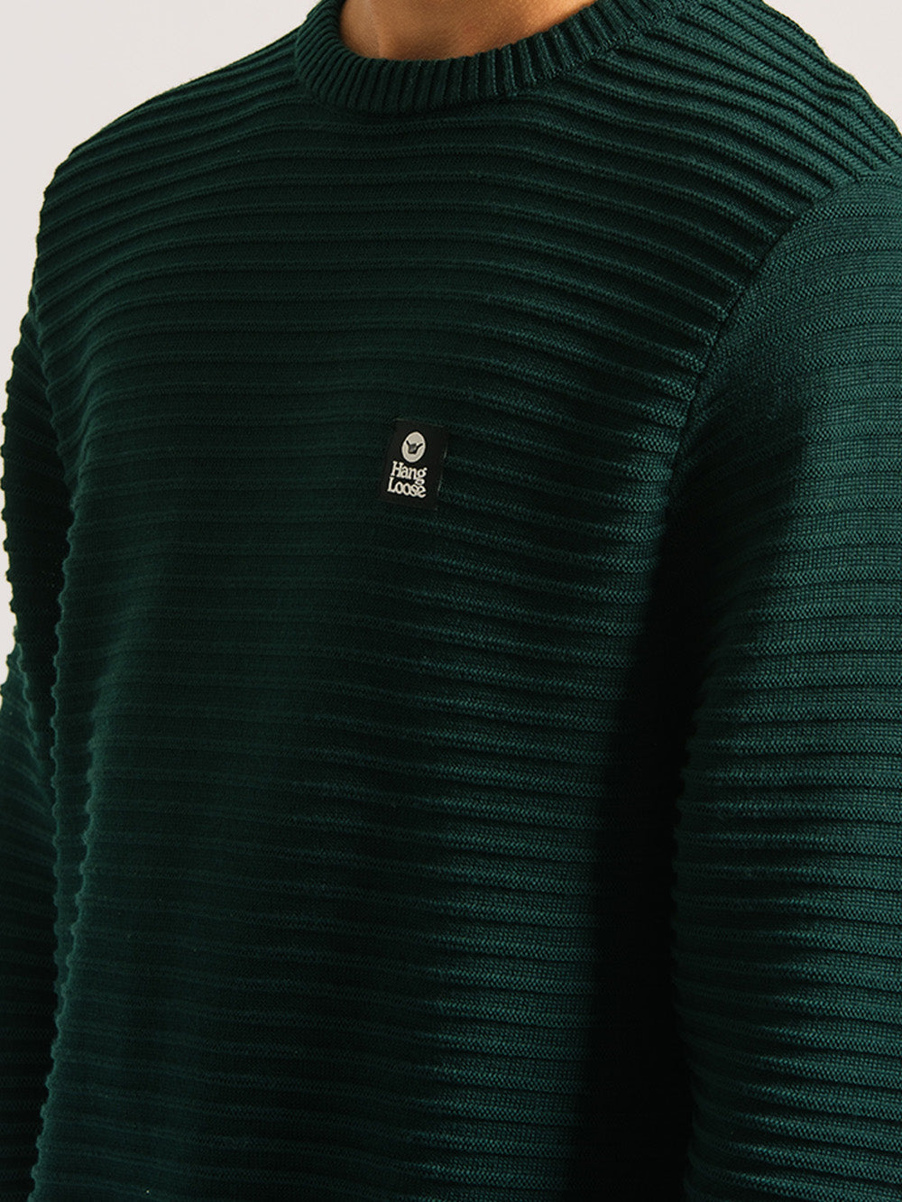 Conheça o Tricot Hang Loose Embostripe: Confeccionado em tricot jacquard, ele se destaca pela textura e padrões únicos. A aplicação da etiqueta com a logomarca no peito adiciona um toque autêntico. Este suéter de tricot é essencial para os seus dias de inverno, mantendo você aquecido e elegante.